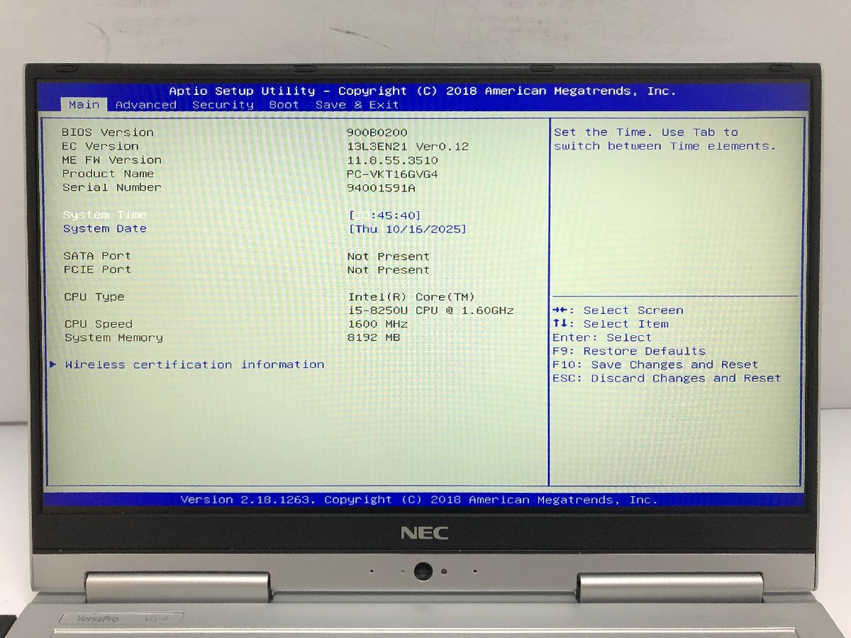 ジャンク/ NEC PC-VKT16GVG4 Intel Core i5-8250U メモリ8.19GB ストレージ無し 【K23047】