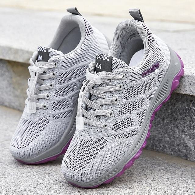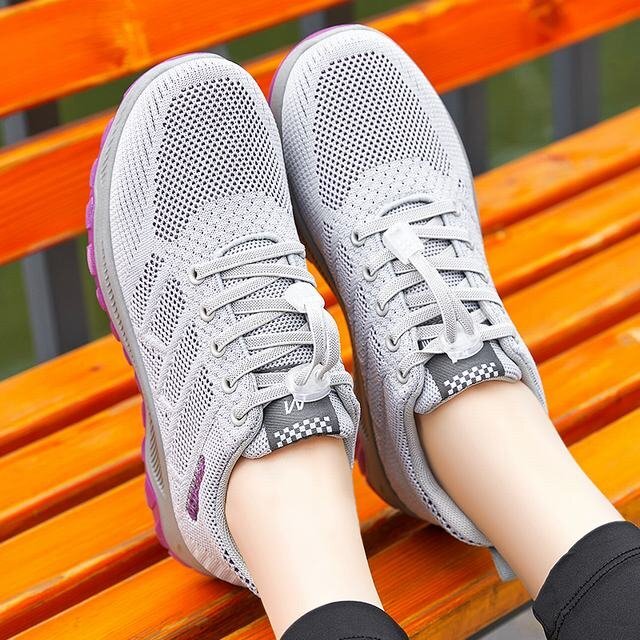 ★スニーカー レディース メッシュ レディース靴 スポーツ アウトドア 春秋 軽量 散歩シューズ 通気性 通勤 婦人靴 グレー25cm