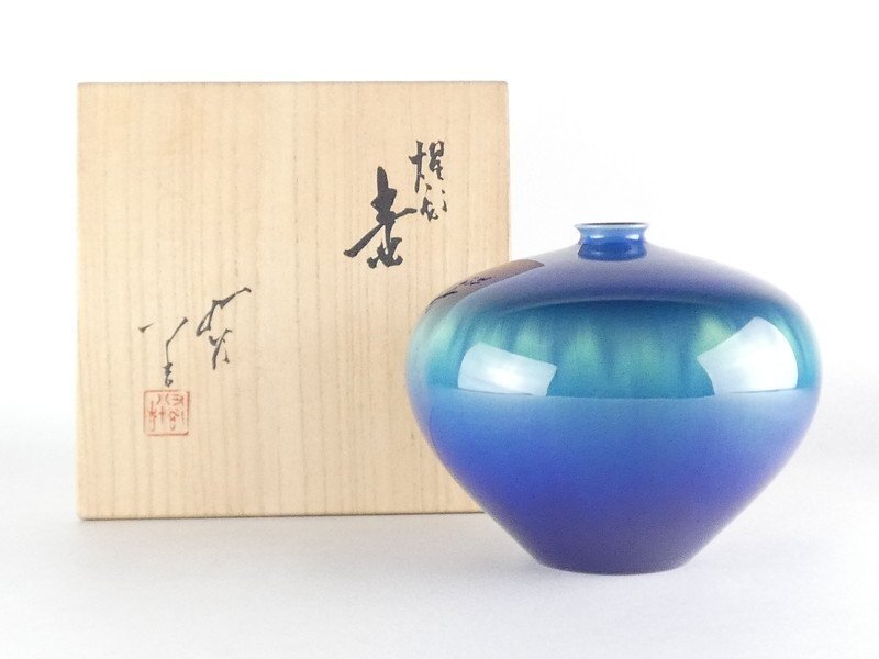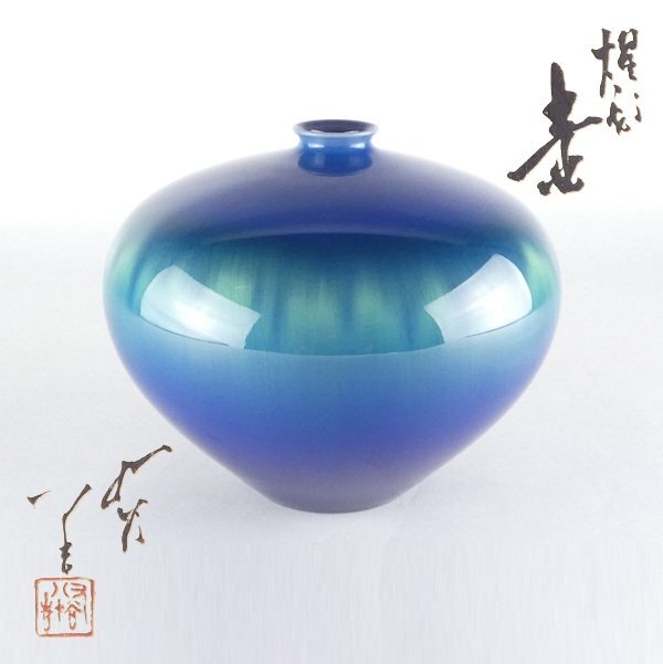 人間国宝 三代 徳田八十吉(金銘)「燿彩 壷」共箱