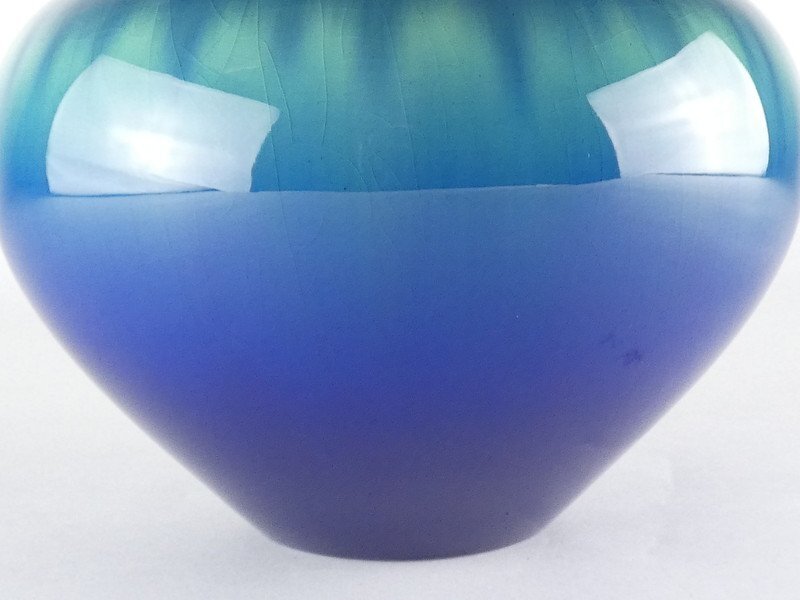 釉薬で色彩を調整した鮮やかな群青色に強い個性がある。