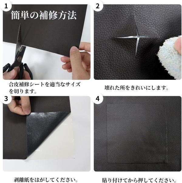 【幅広い用途】自転車のサドル、バイクのシート、車のシート、カバンなどにお使いいただけます。壁紙・内装・インテリア・撮影用スクリーン・小物づくり、ソファーの傷、生地のカギザキを補修出来ます。その他キズや破れ以外に手芸品、民芸品、工芸品などの工作やDIYなどにもご使用いただけます。