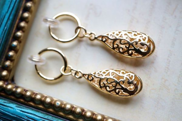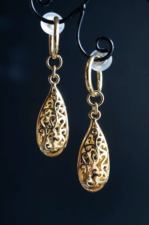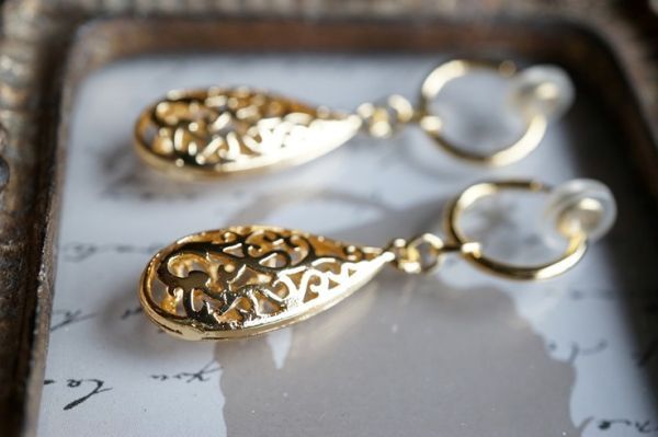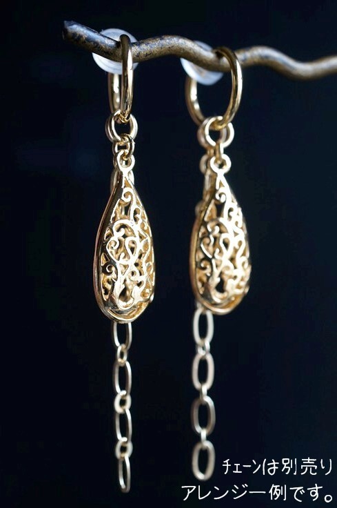イヤリング 601 透かしメタル(本金メッキ)のフープイヤリング ステンレス304 Gold 金属アレルギー対応金具使用
