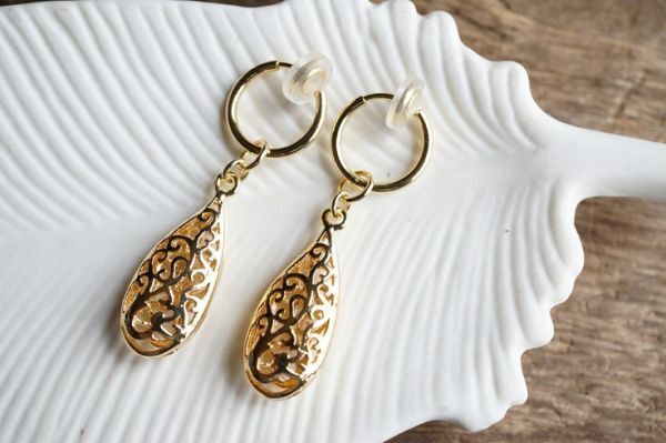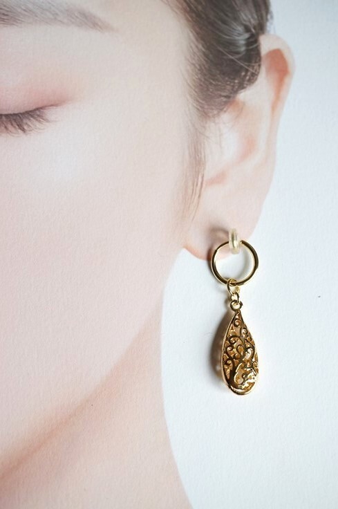 ピアス穴が無い方でもフープピアスを付けているように見せられるイヤリングパーツです。