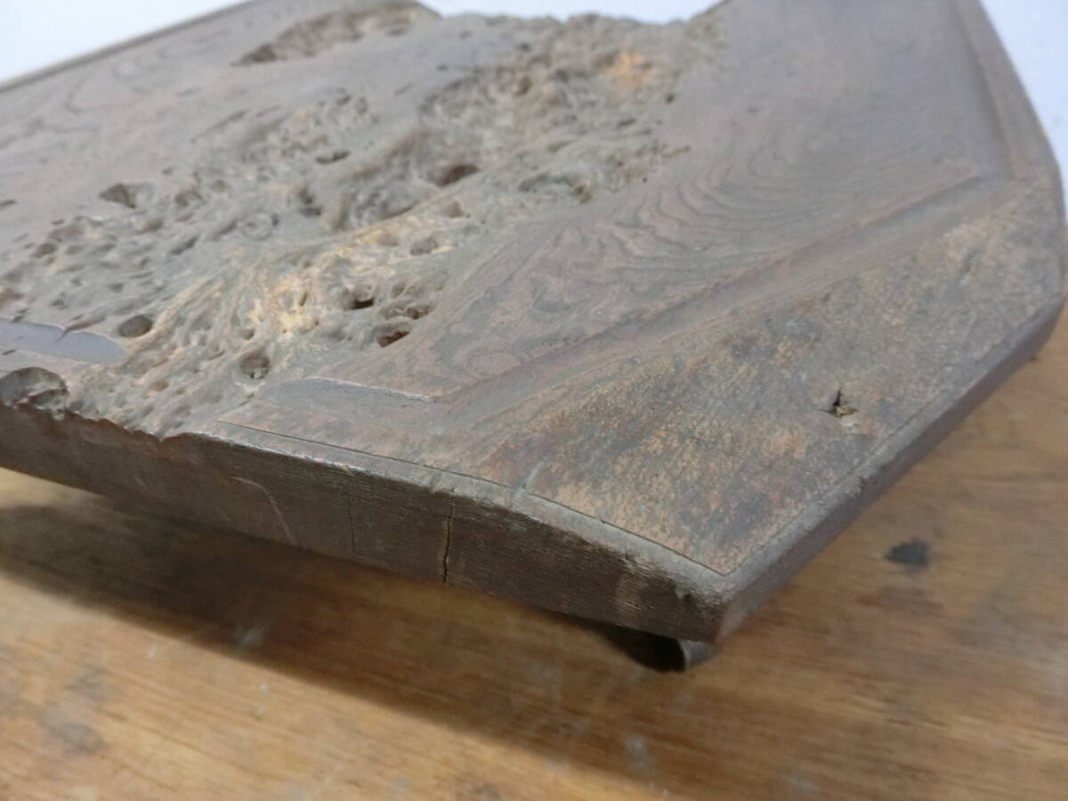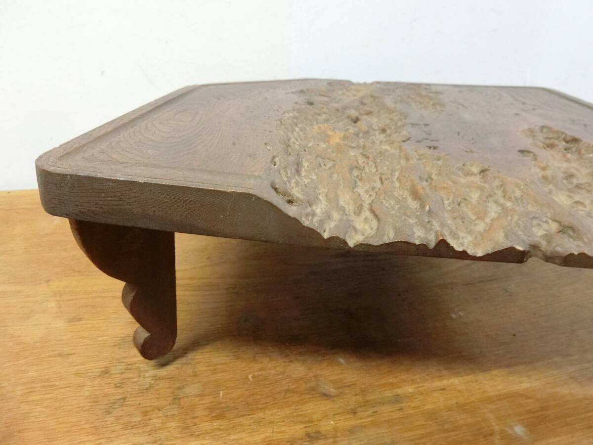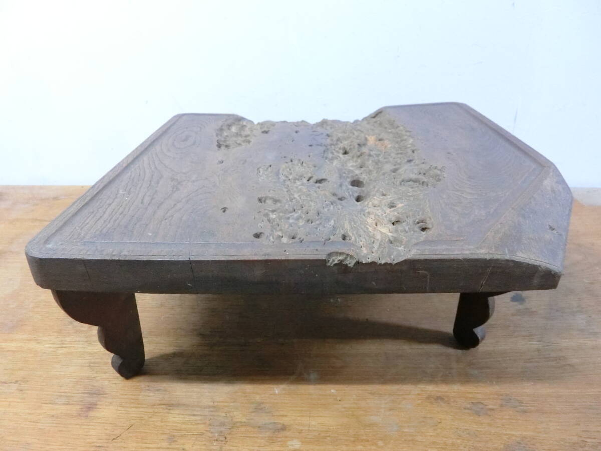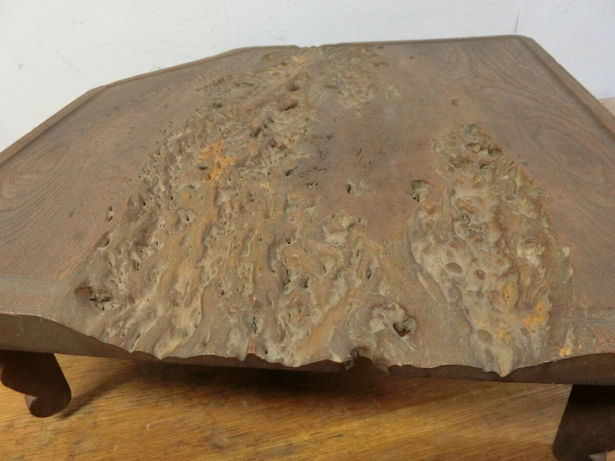 見事な“瘤木(こぶもく)”が台の中央辺りにある、古い脚付き台です。
