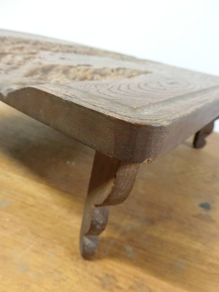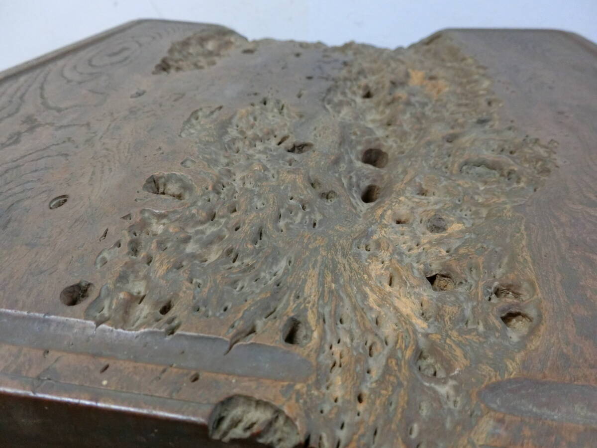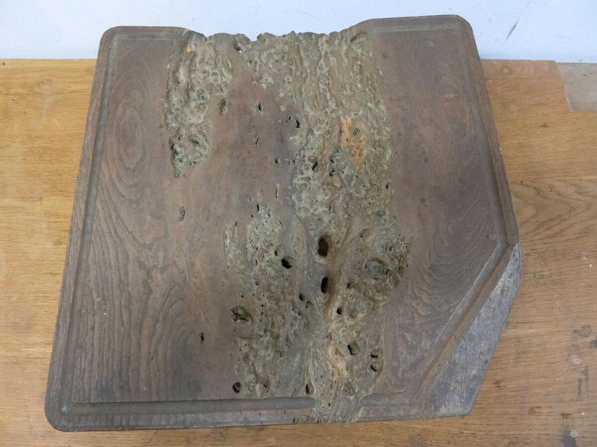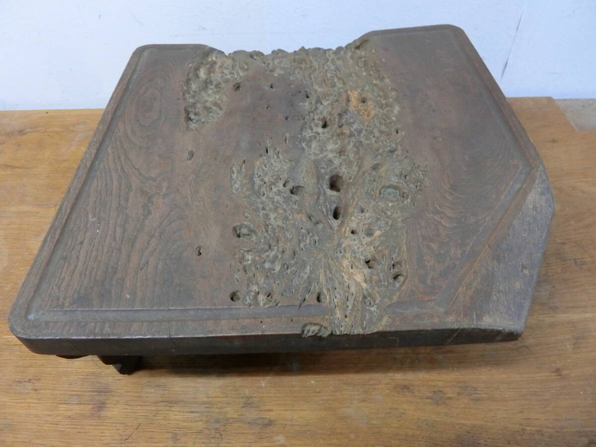 見事な“瘤木(こぶもく)”が台の中央辺りにある、古い脚付き台です。