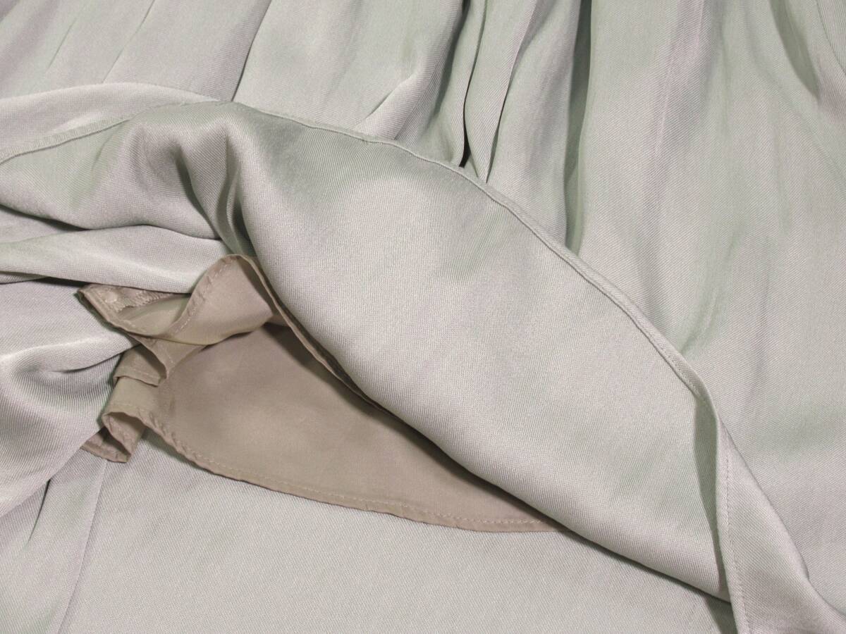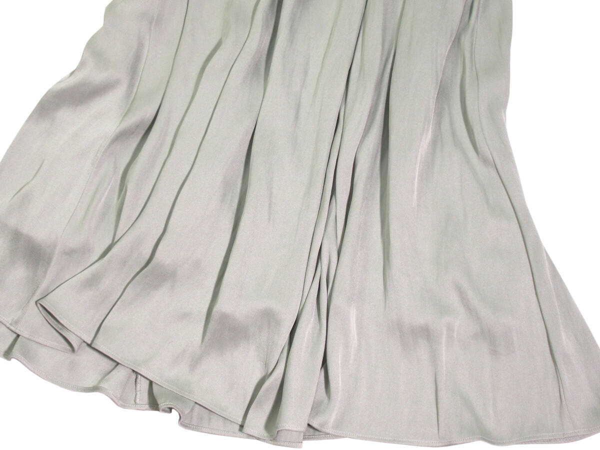・ふんわりと広がる分量感のあるドレープが美しい、フレアスカート 落ち感のあるサテン生地をたっぷりと使い、フェミニンな印象に仕上げました。華やかな光沢感と春を感じさせる軽やかさが、これからの季節にぴったり。ミドルゲージのコットンニットやスウェットと合わせた、カジュアルミックススタイルがおすすめ ◇状態 :目立った傷や汚れなし ◇仕様 裏地 : あり*ゴムウエスト 伸縮性 : なし お洗濯 :手洗い可 ◇サイズ表記 : M ◇実寸 :w33×2・総丈81㎝位 *素人採寸ですので多少の誤差はご容赦ください ◇素材 :表地、裏地共に ポリエステル100% ◇カラー : ミントグリーン系 * 実物に近いように撮影しておりますが、各御家庭でのモニター環境等により、お色など見え方が異なる事がある事をご理解の上、入札をお願い致します。 | ||