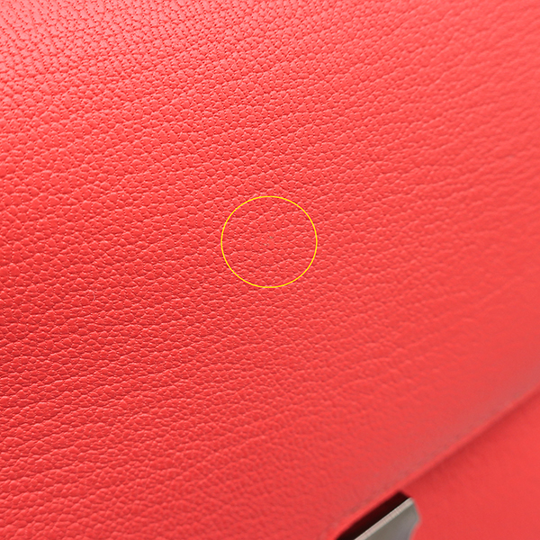 【外側】表面に微かな擦れや製造時からと思われる黒点、ショルダーに微かな擦れ、金具に僅かな擦れや小傷【内側】特になし【におい】僅かな素材特有のにおい【刻印場所】奥コンパートメント上部