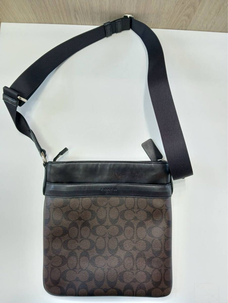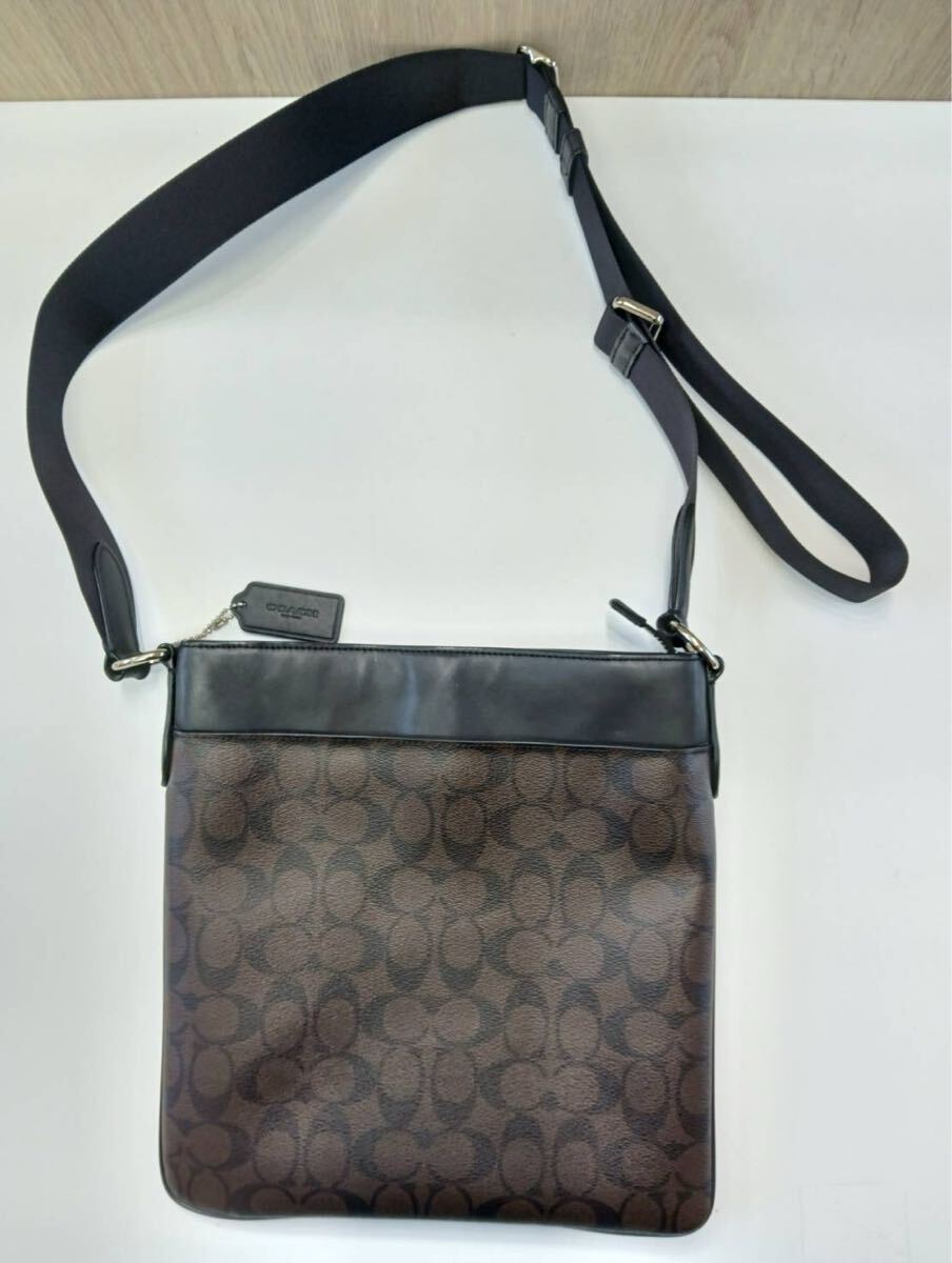 COACHコーチ シグネチャー ショルダーバッグ F54781 茶ブラウン×黒ブラック 肩掛け バッグかばん 現状品