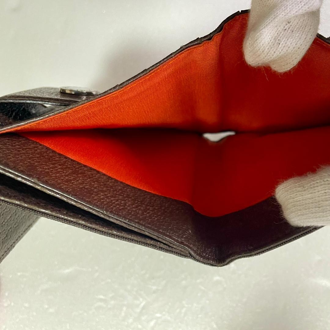 Bulgariのブラウンレザー二つ折り財布、オレンジの内側が特徴。