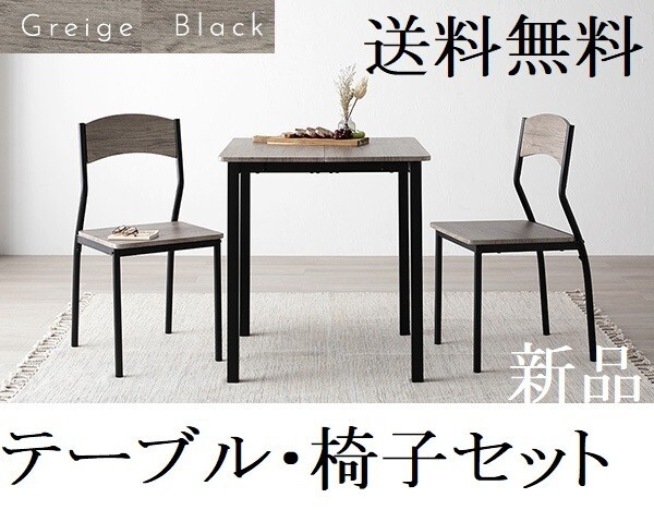 即決/送料無料 ダイニングテーブルセット 2人 70cm テーブル チェア2脚 グレージュ/ブラック 商品ID 2537605