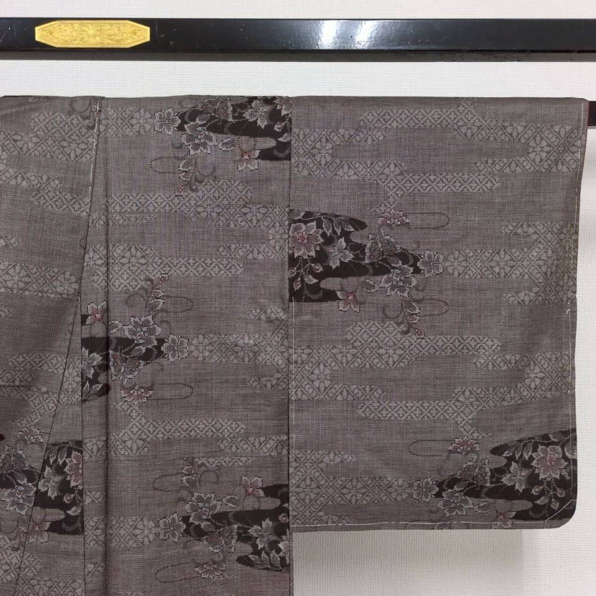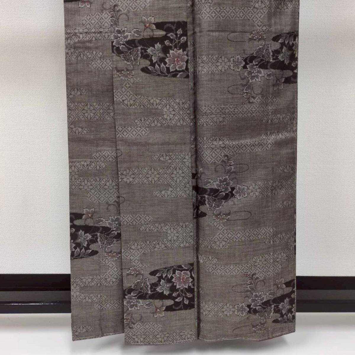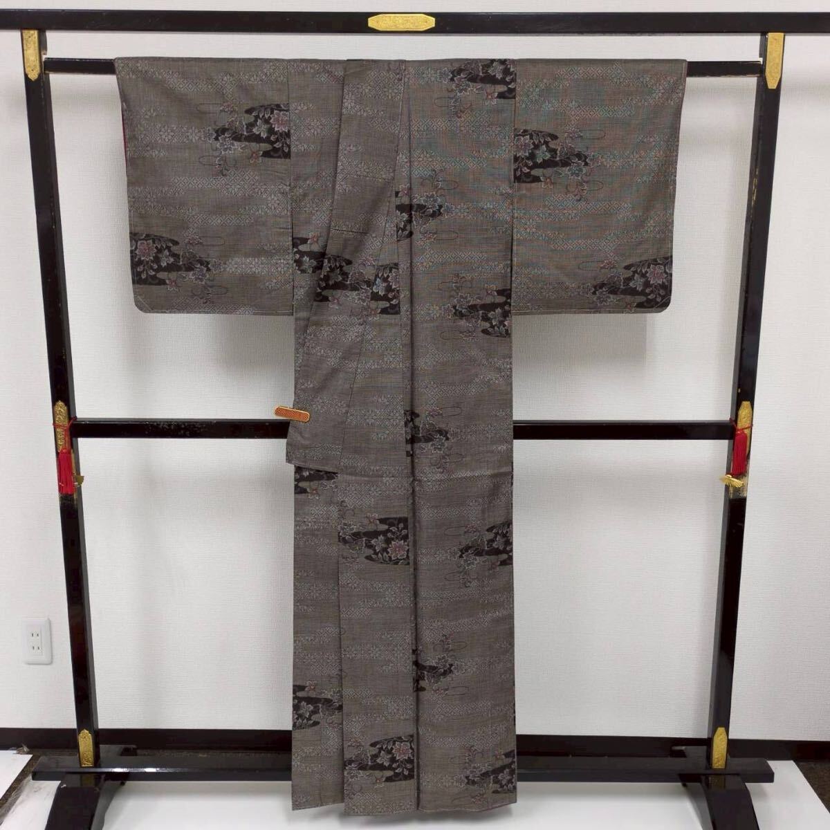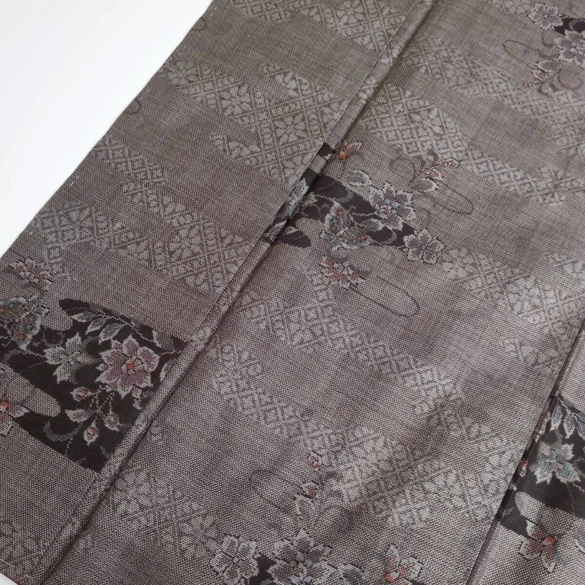 【楓】本場大島紬 正絹 茶泥染め 9マルキ カタス式 花草蝶 袷 着物 KK-499