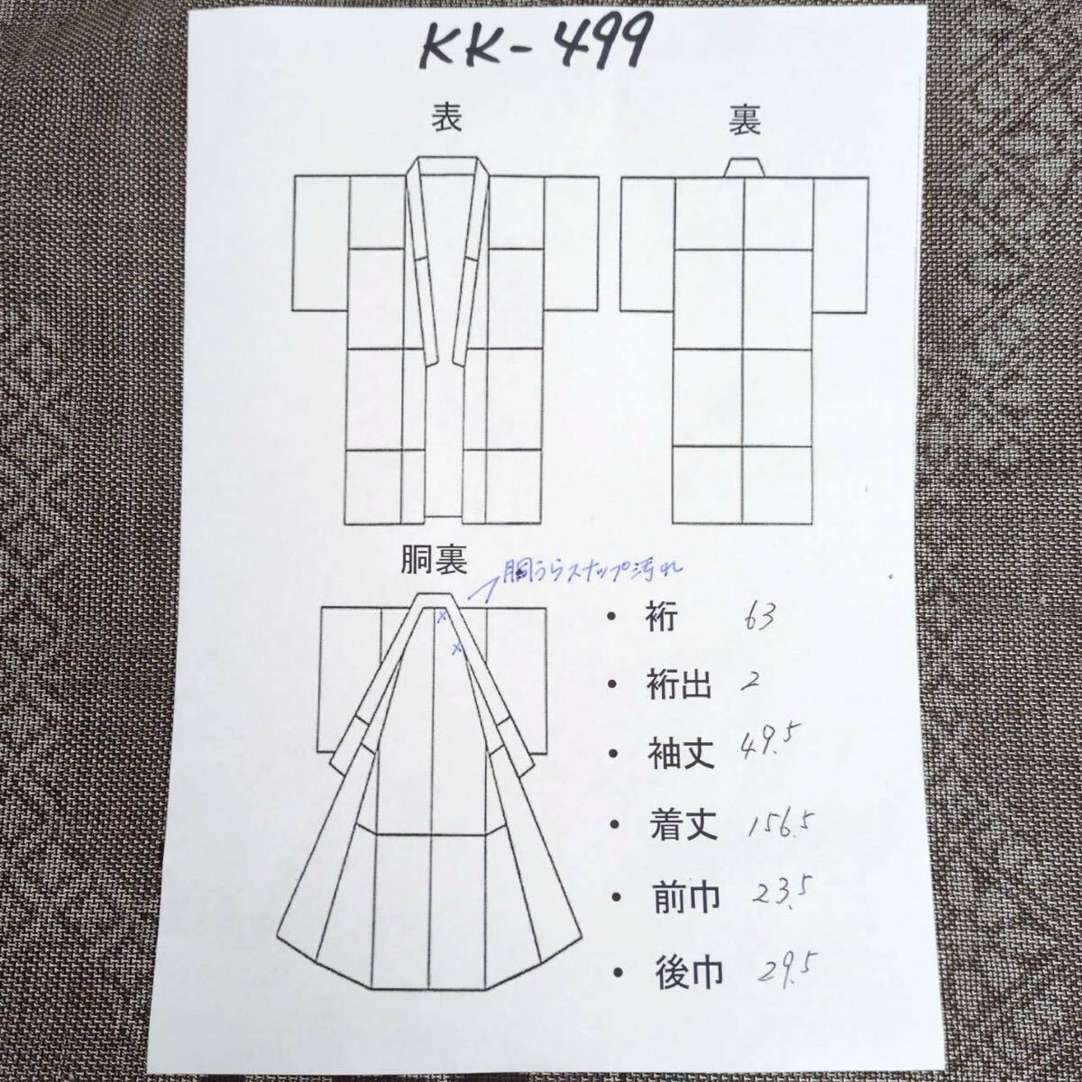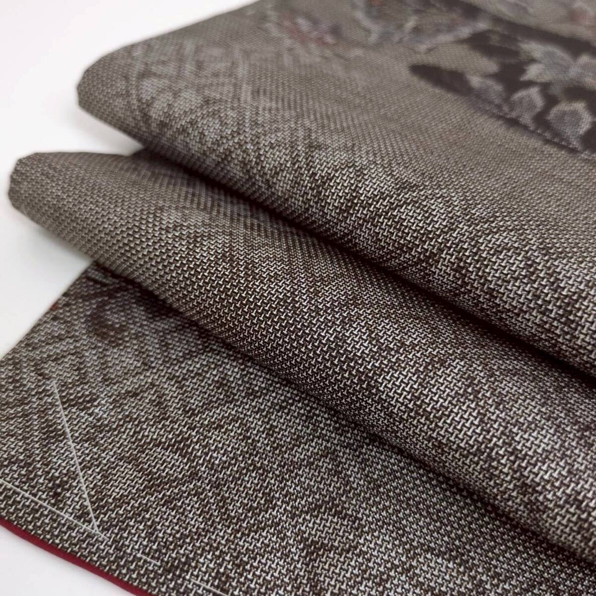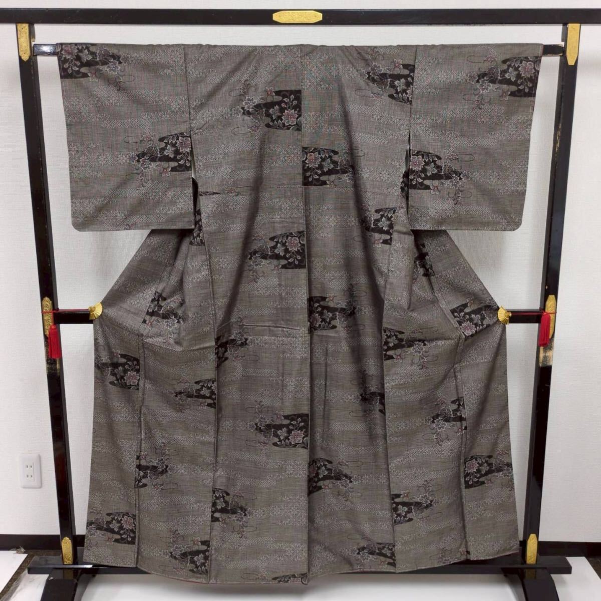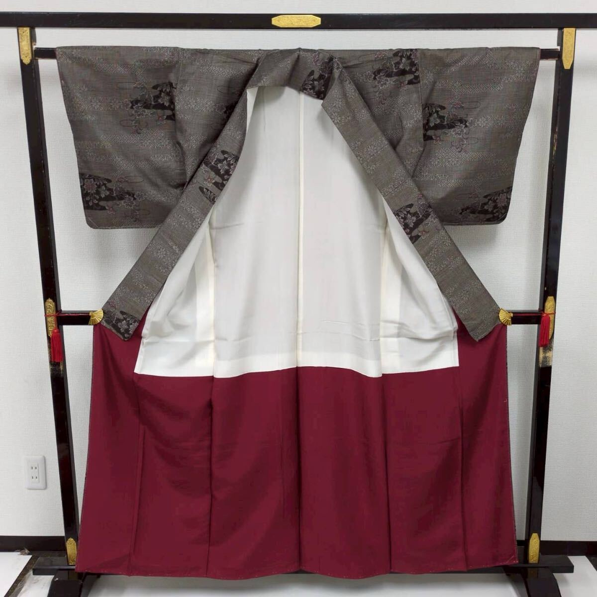 【楓】本場大島紬 正絹 茶泥染め 9マルキ カタス式 花草蝶 袷 着物 KK-499
