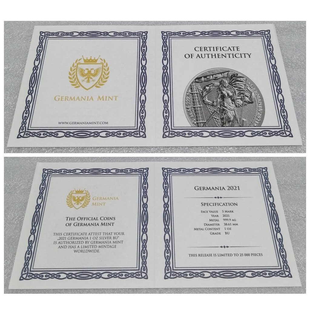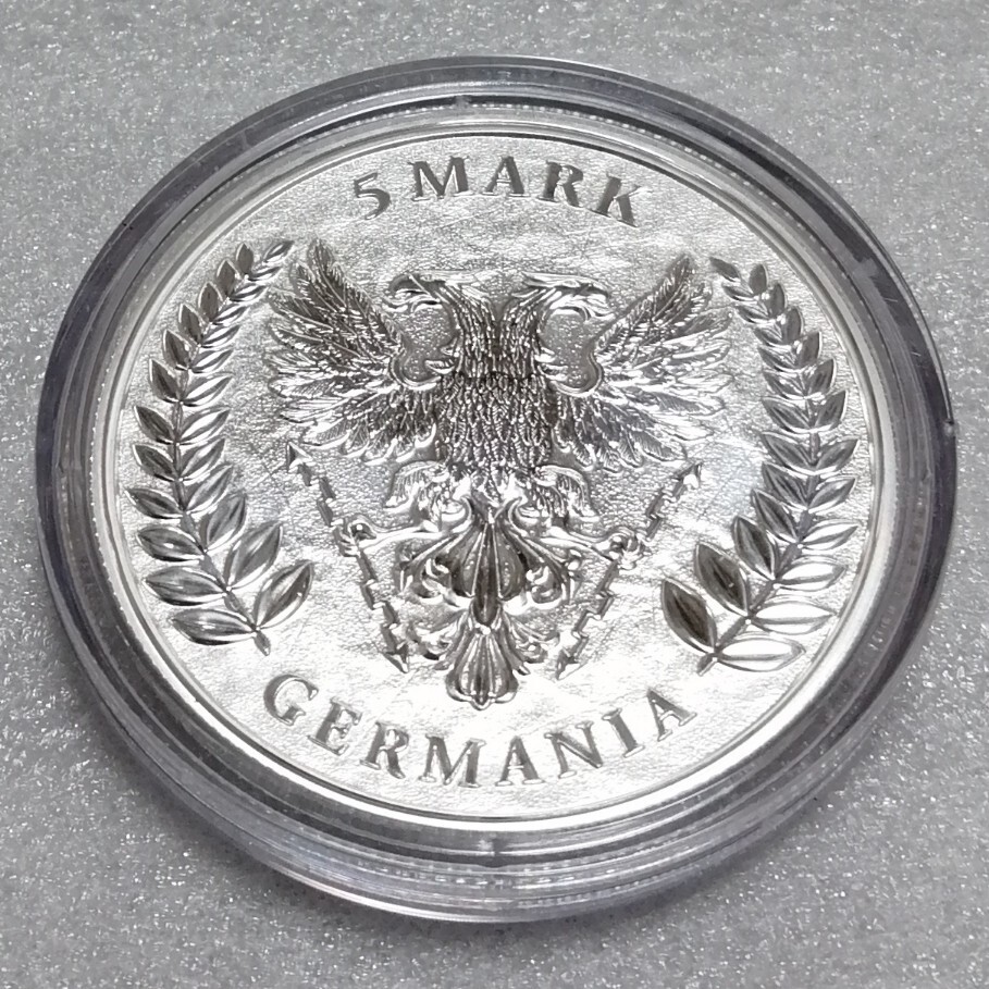 重量 1トロイオンス。直径 38.61ミリ。 純度 .9999。発行枚数25000。ゲルマニア銀貨出品。オリジナルカプセル(一度も開けてません)と証明書付き。箱なし。ゲルマニアミント発行。