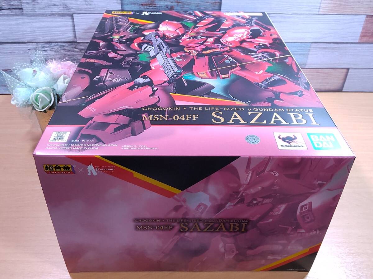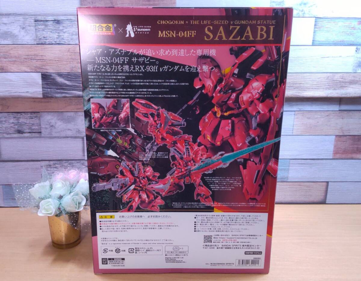 【商品情報】 『【未開封】超合金 MSN-04FF サザビー』 「MSN-04FF サザビー」がダイキャストを使用した玩具シリーズ「超合金」になって登場。 複数の色味の赤を使用した装甲表現やダイキャストの重量感、頭部ライトアップギミックなど豪華な仕様となっている。 メーカー:バンダイ(魂ウェブ) 発売日:2024年04月19日 全高:約230mm 材質:ダイキャスト、ABS、PVC製 セット内容 ・本体 ・ダブル・ホーン・ファンネル×2 ・ビーム・ショット・ライフル ・ビーム・トマホーク ・ビーム・トマホーク用エフェクト ・ビーム・サーベル柄×2 ・ビーム・サーベルエフェクト×2 ・シールド ・ダブル・ホーン・ファンネル用刃エフェクト×2 ・交換用手首左右各3種 ・台座一式 ・武器ホルダー ・ダブル・ホーン・ファンネルホルダー ・補助支柱×2 ・補助支柱基部2種 ・ダブル・ホーン・ファンネル用台座一式 ・超合金 RX-93ff νガンダム用交換手首右1種 ・LR41×3(テスト用電池) | ||