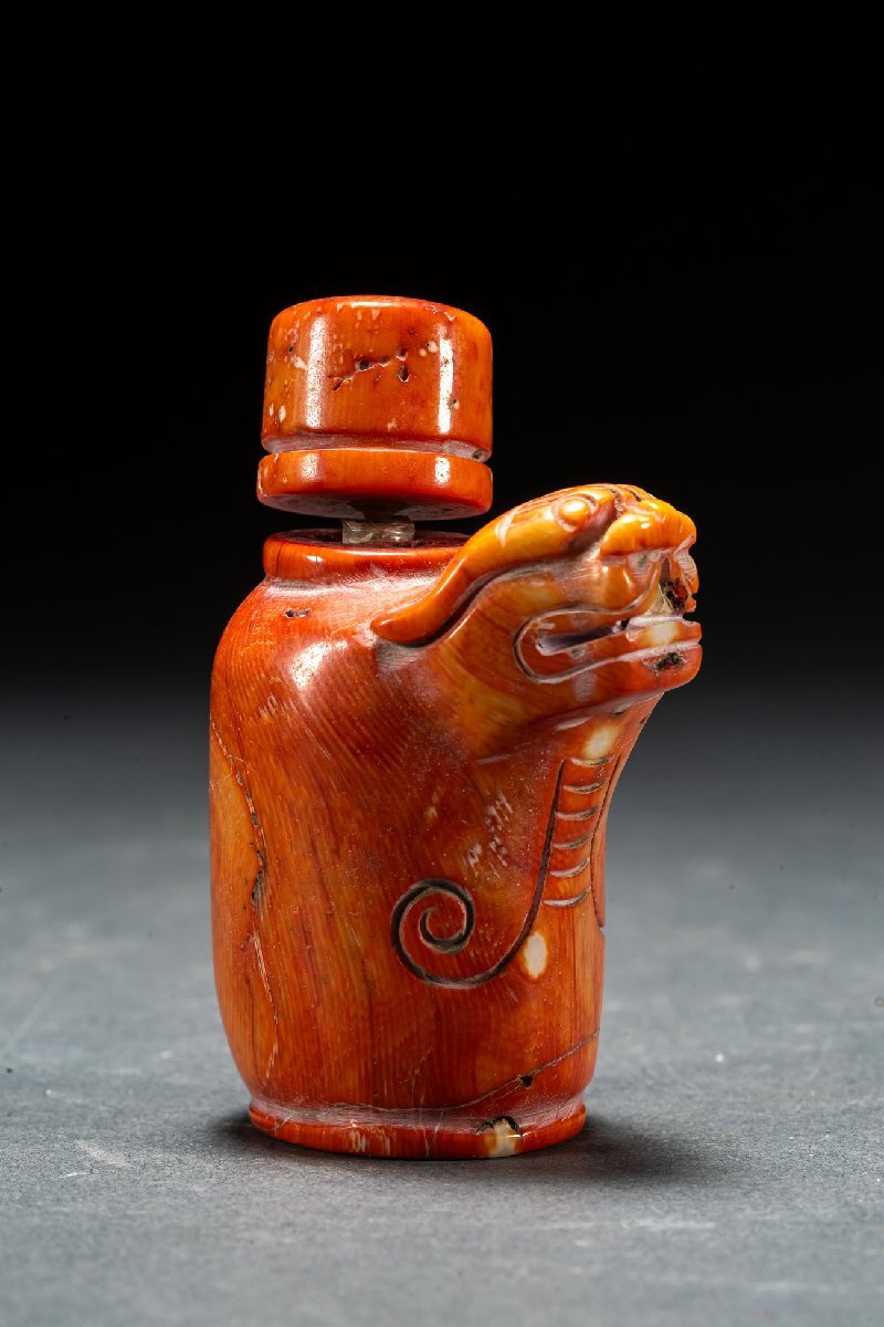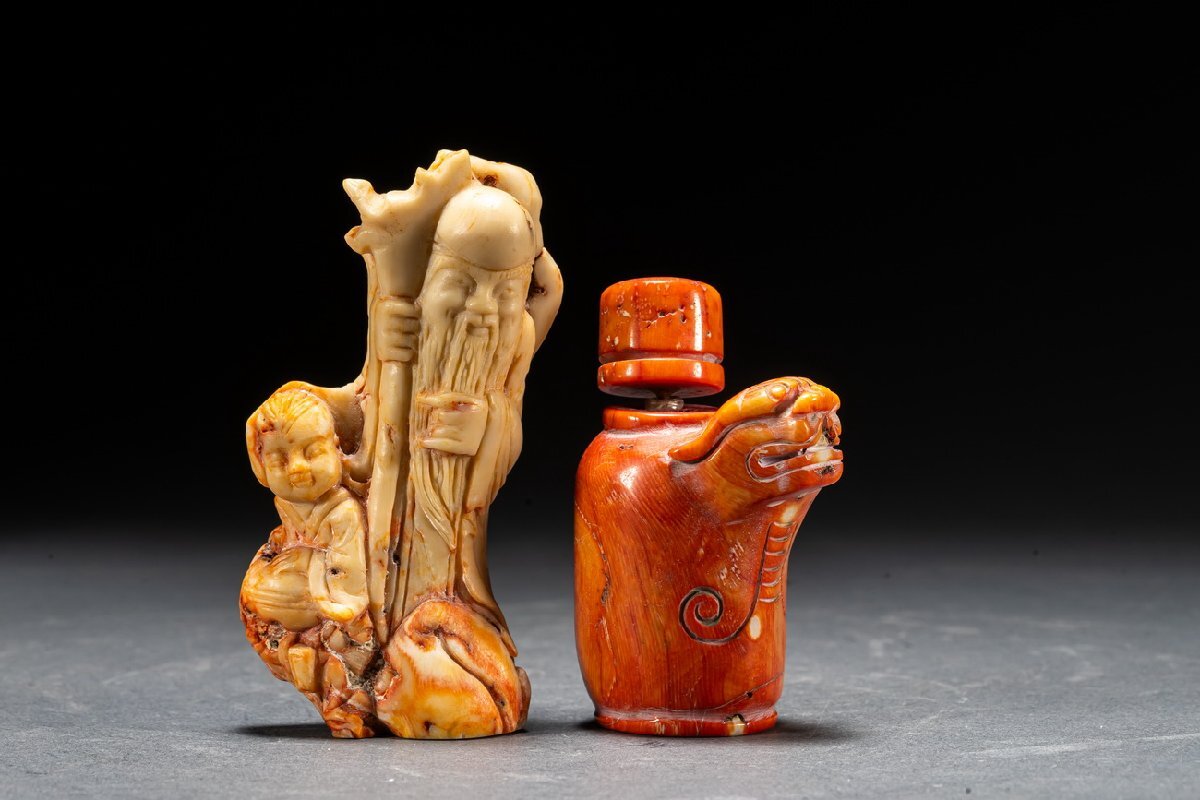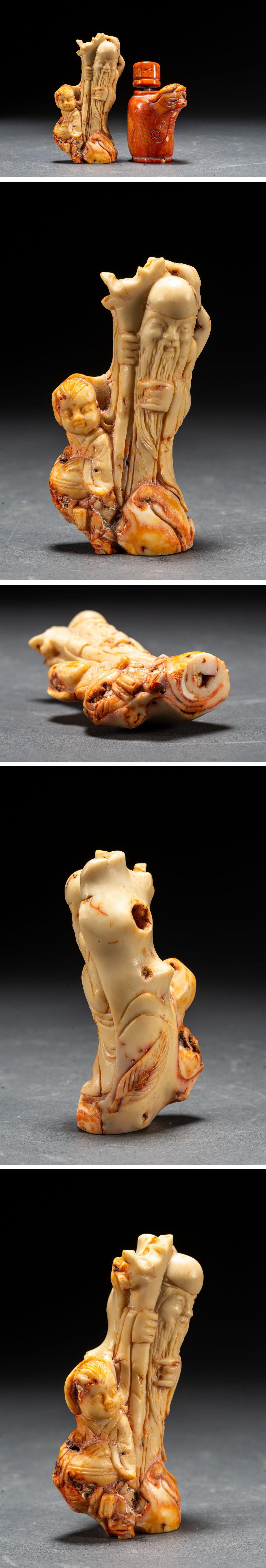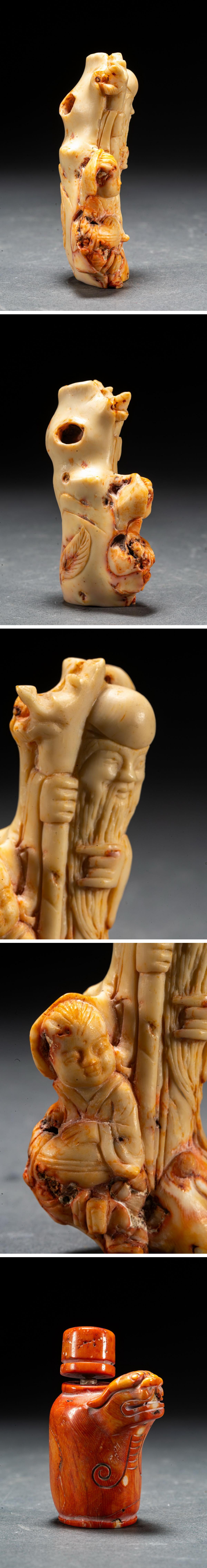 【清】某有名オークション購入 天然材 赤珎材 寿老人・鼻煙壺 高級美術品 時代コレクション7L9-47S1