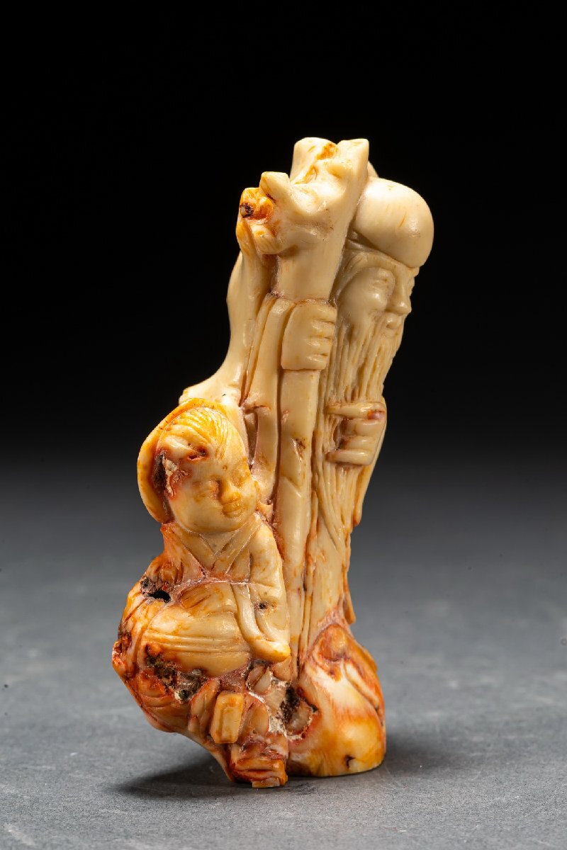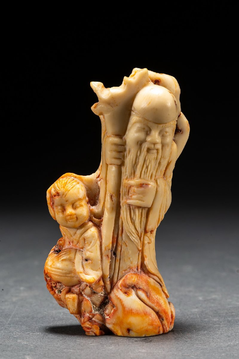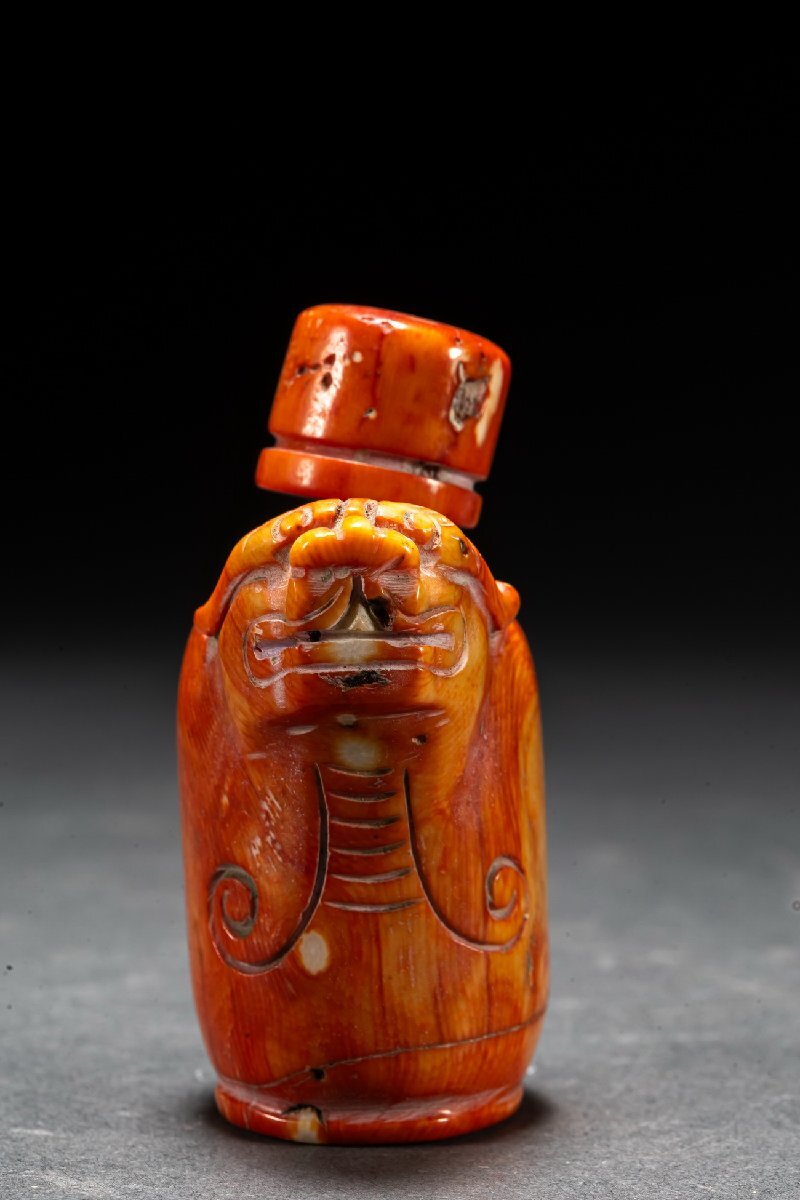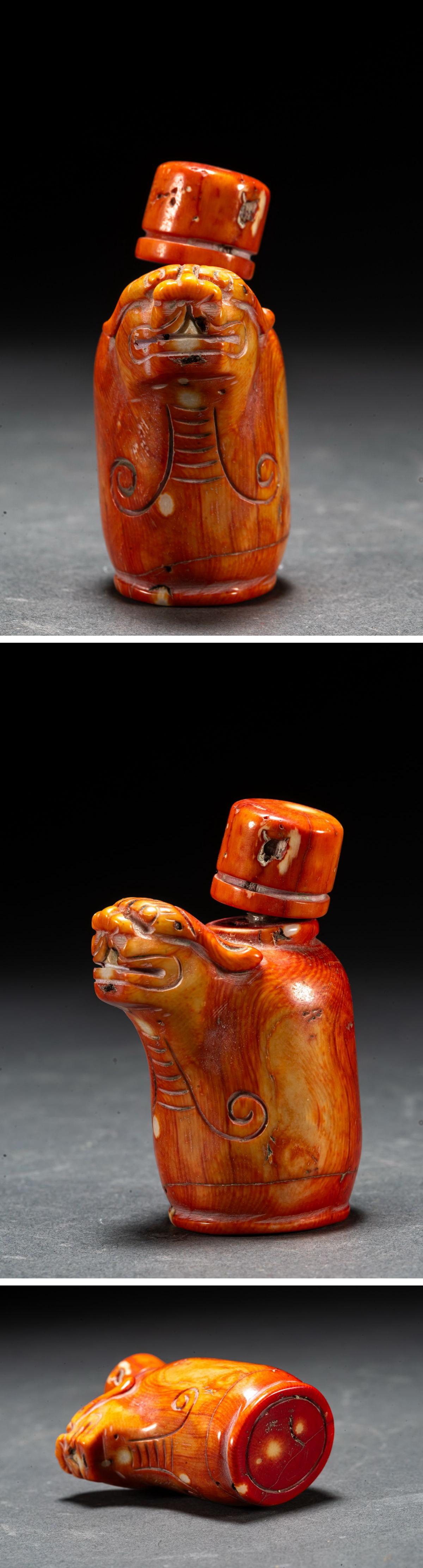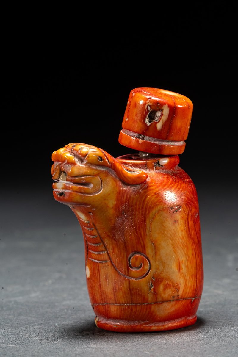 【清】某有名オークション購入 天然材 赤珎材 寿老人・鼻煙壺 高級美術品 時代コレクション7L9-47S1