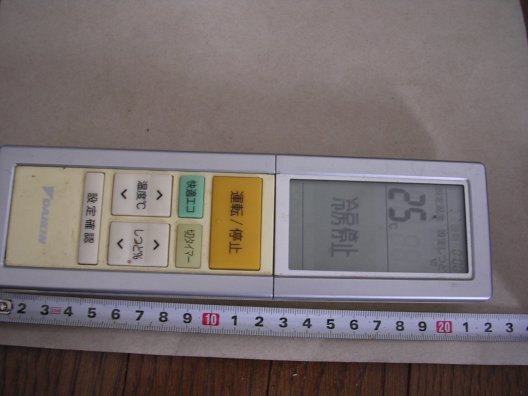 | 商品説明 | ■ARC456A7 ダイキン エアコン用リモコン 表示ok/赤外線信号確認(確証提示) 動作しそうな完全JUNK 倉庫整理の際に出て来たものです。使わないので出品します。 出品者は使用しておりません。 ■ 出品物 ARC456A7 ダイキン エアコン用リモコン 表示ok/赤外線信号確認(確証提示) 本体のみ 以上となります。 書かれていないものについては付属しません。 乾電池はありません。 写真にメジャーが写っている場合、メジャーは出品物に含まれません。メジャーは大きさ比較のために置いたものです。 ■ 商品の状態 出品にあたり、以下のことを確認しております。 手持ちの乾電池をセットして動作確認を行っております。 ボタンを押すと赤外線発光部から赤外線信号が出ていることを確認しております。信号が出ているため、「動作しそうな」と表現しておりますが、実際に機器に向けての確認は行っておりません。 念のため、1つずつすべてのボタンを押して、すべてのボタンで信号発光できていることを確認しております。(タイマー系のボタンは遅れて発光します) 赤外線発光状態は、写真にてご確認ください。デジカメのモニター画面を見ながら、この発光確認を各ボタンすべてに対して行っております。お示しできるものは、できるだけ写真に撮ってお示ししております。(「確認済み」だけで出品する、いいかげんな出品者も多ございますが、「確認済み」と称するのであれば、その確証をお示しするのがスジというものではありませんか? この程度の検証なら、かんたんに出来ますよね。) ボタンは少し深めに押し込まないと、応答してくれない場合があります。 電池室はきれいです。 本体には黄ばみ・汚れ・擦り傷があります。 液晶パネル面にはキズが目立ちます。リモコンを見ながらなにかをする、ということは考えにくいので、あまり気にならないとは思いますが、美品をお探しの方はご遠慮ください。 本機が使える適合機種はわかりません。型番より、ご入札者さまにてお調べください。お問い合わせをされても、お答えできません。 以上のみ確認しております。書かれていないことについては、確認しておりません。また、確認はごく短時間にとどめてあります。長時間のテストや反復テストは行っておりません。 書かれていないことについてのご苦情は、いっさいお受けできません。 この状態で使えると判断された方のみご入札願います。見えていない不具合を内包する可能性のある、機能保証まではできない、「ジャンク扱い品」です。期待された機能が使えなくても、出品者はいっさいの責任を負いません。返品・返金には応じられません ■ ジャンク理由 実機に向けての動作確認は行っておりません。 動作確認作業で、見落としてしまっている不具合がないとは言えません。思わぬ不具合を内包している可能性も否定できません。 動作確認できていることでも、永続的な動作保証や実使用での機能保証までできません。そのためにジャンク扱いとさせていただいております。まったく確認さえしていない「無責任ジャンク」や、「不動品ガラクタジャンク」とは少し意味合いが異なりますが。 汚れやキズ・埃の付着があります。美醜を気にされる方は入札をご遠慮ください。汚れは軽く落としてありますが、清掃やキズリペアはご自分でおやりになる方向けです。 写真の色や説明中の色の呼び名は、正確でない場合があります。 ご入札がない場合には、オークションの終了を待たずに「撤収」する場合があります。「撤収」した場合、再出品しない可能性もあります。 | ||