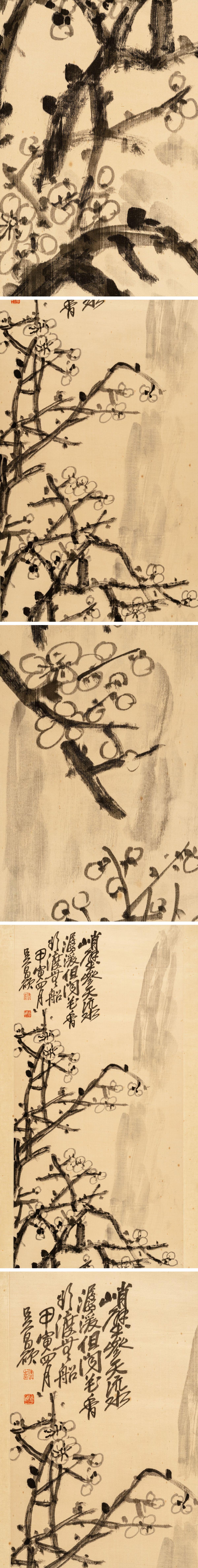【清】中国時代画家「呉昌碩書」紙本「梅花図・掛け軸」真作 巻き物 中国画 墨寶妙品 中国書画 古美味 古美術7L6-29