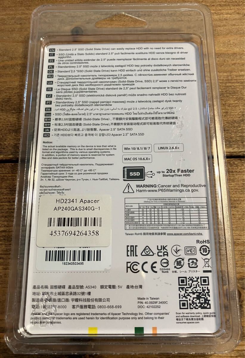 【未開封品】Apacer PANTHER 240GB AP240GAS340G-1 2.5 SATA SSD