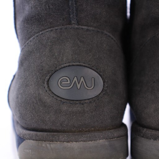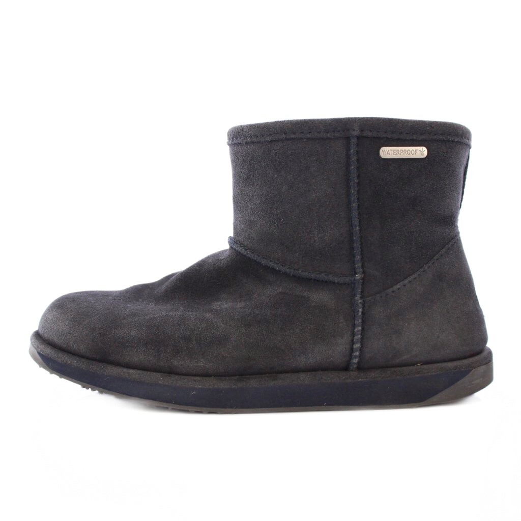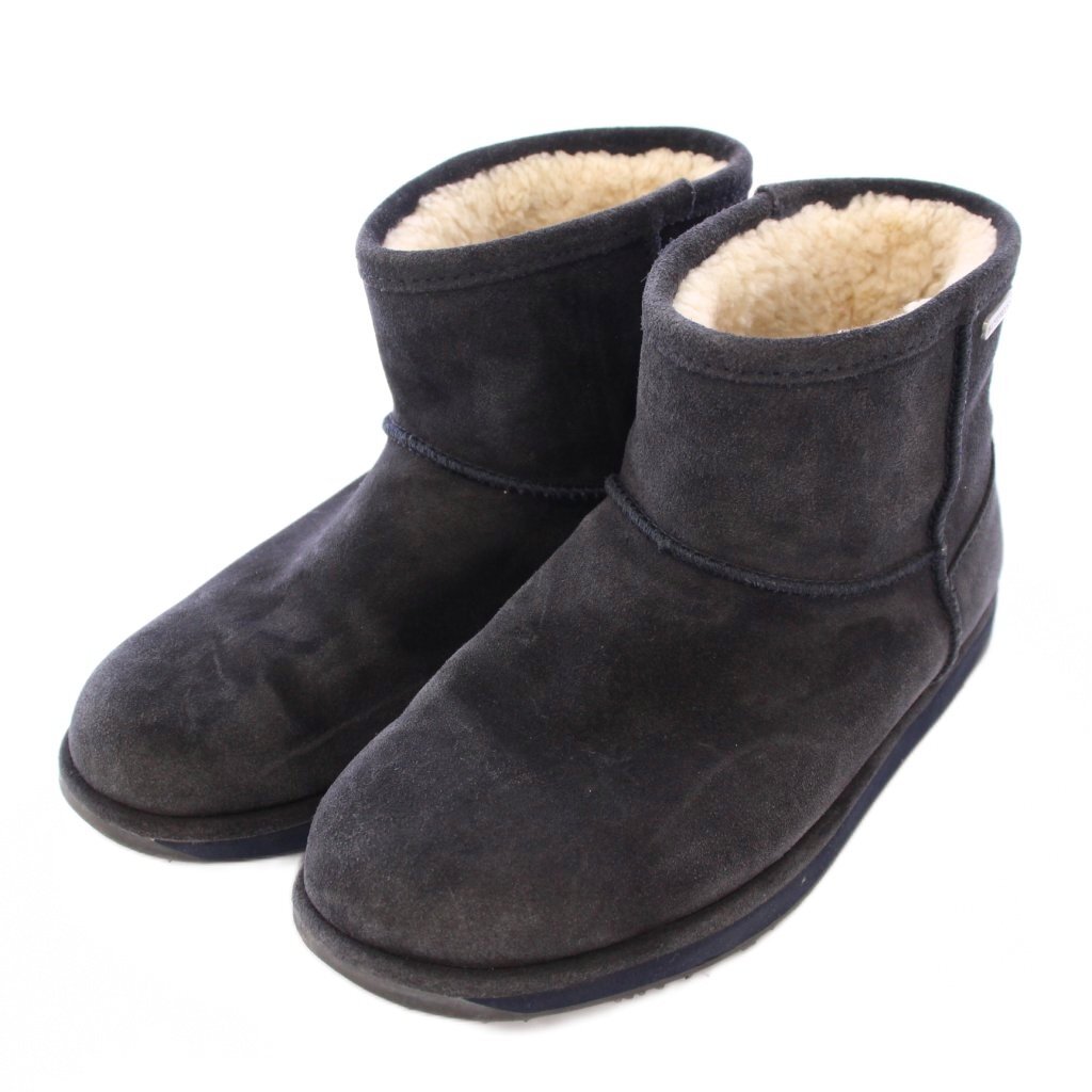 エミュー emu ムートンブーツ ショート スエード ロゴ 24cm チャコールグレー /BB レディース