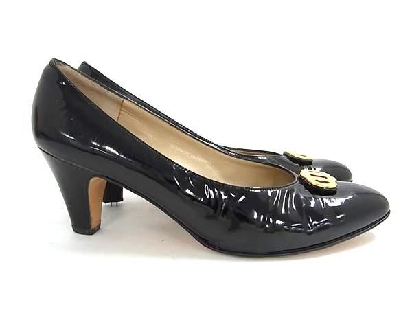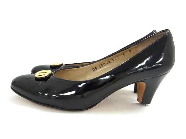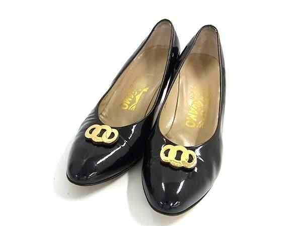 Salvatore Ferragamo フェラガモ パテントレザー ヒール パンプス 表記サイズ 6 (約23cm) 靴 シューズ レディース ブラック系 DF7020