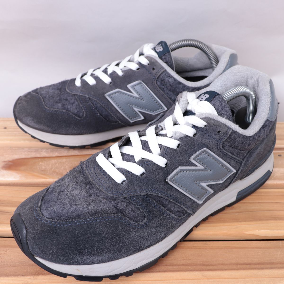 z2848【565】ニューバランス US9.5 27.5cm/紺 ダークネイビー 灰 グレー白 ホワイト newbalance メンズ スニーカー 中古