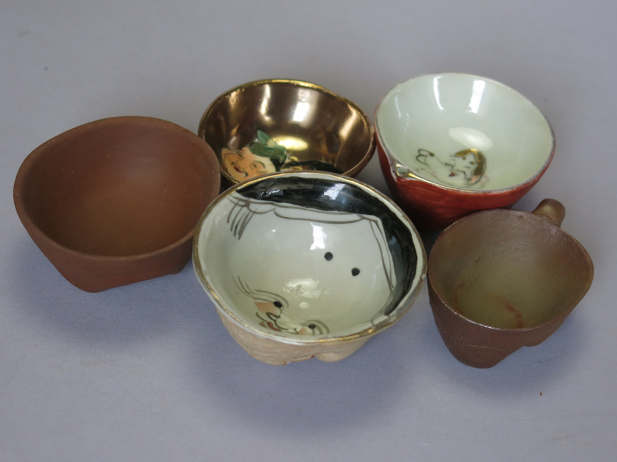 鬼面盃いろいろ、五個、節分盃、鬼は内福は外