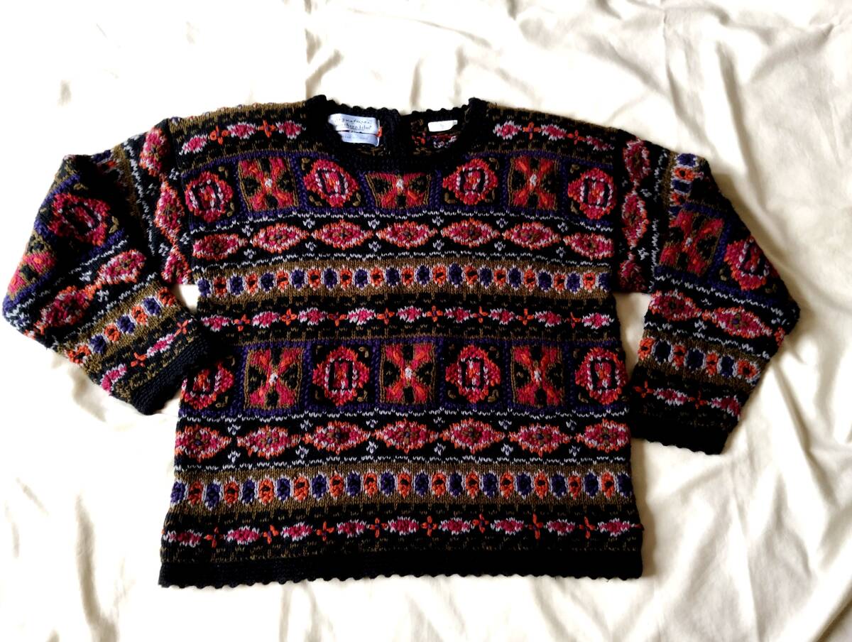 カラフルで可愛い花柄のHANDKNIT セーター。