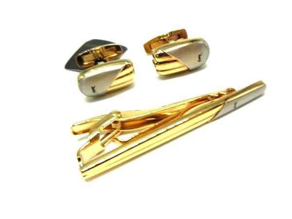 ■新品同様■ YVESSAINTLAURENT イヴサンローラン ネクタイピン カフスボタン カフリンクス アクセサリー 2点セット ゴールド系 DJ4735
