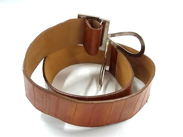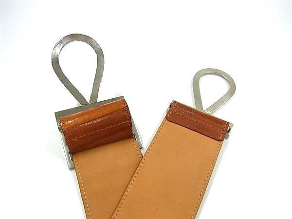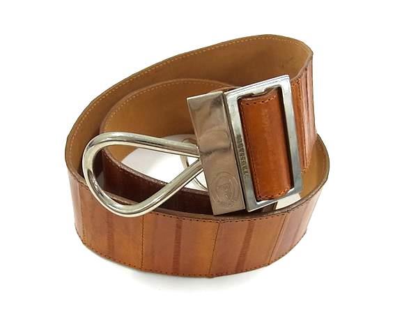 ■美品■ TRUSSARDI トラサルディ レザー シルバー金具 ベルト レディース メンズ ブラウン系×シルバー系 DI1041