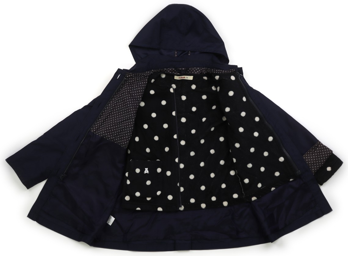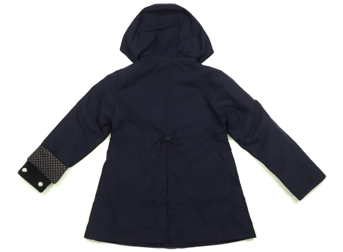ポリエステル素材。裏地付き。フリース素材の長袖ライナー付き。フードの取り外しが可能です。前ボタン開き。広範囲が汚れていて、使用感があります。