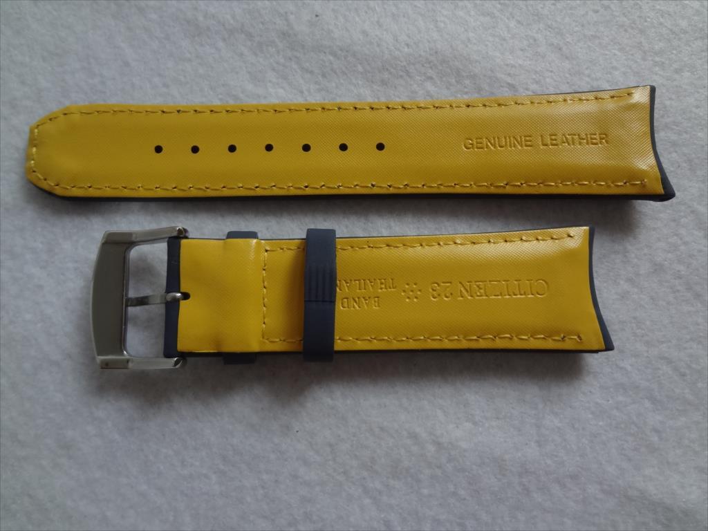 シチズン Citizen純正 腕時計ベルト AT8020-03L, H800-S081165用レザーバンド 23mm 青色 ブルー 裏地:黄色 59-S52543です。