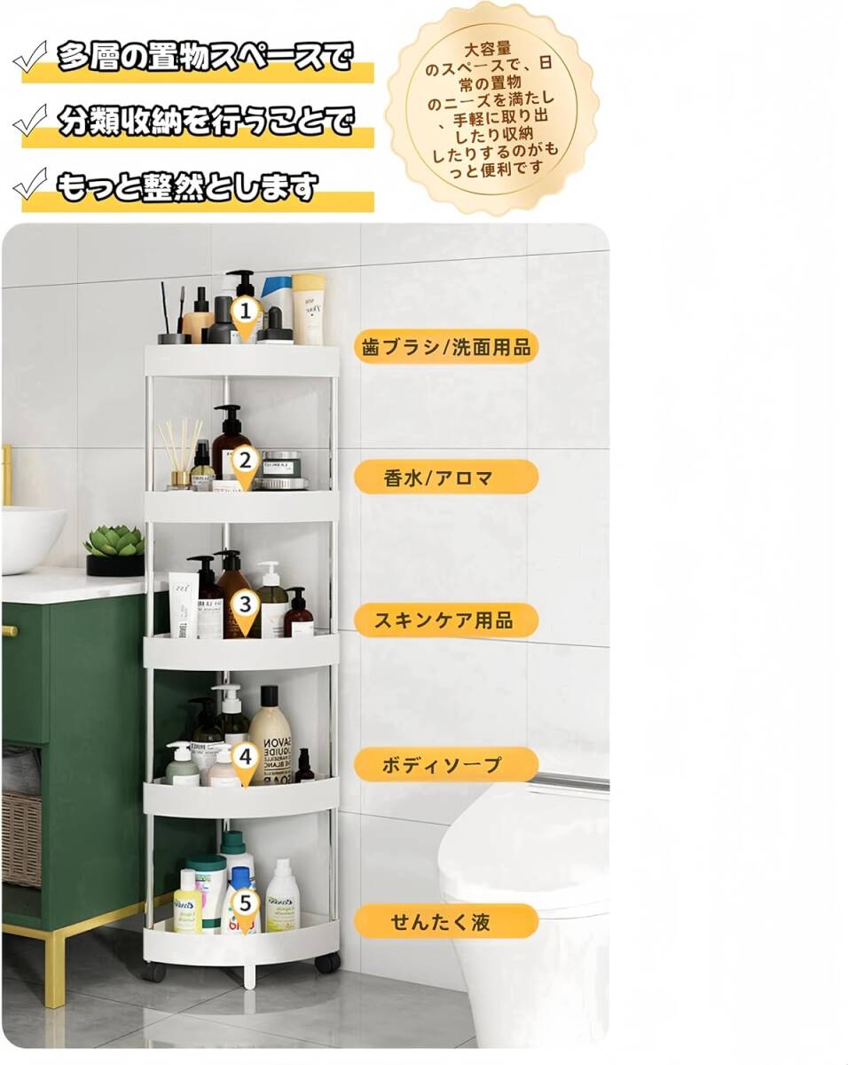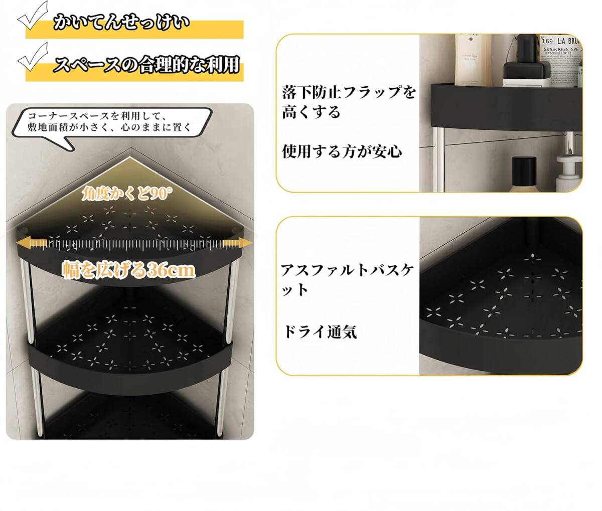 ブラック色 5段 バスルーム 浴室用ラック コーナー ラック お風呂 ラック 洗面所 収納ラック シャンプーラック バスラック