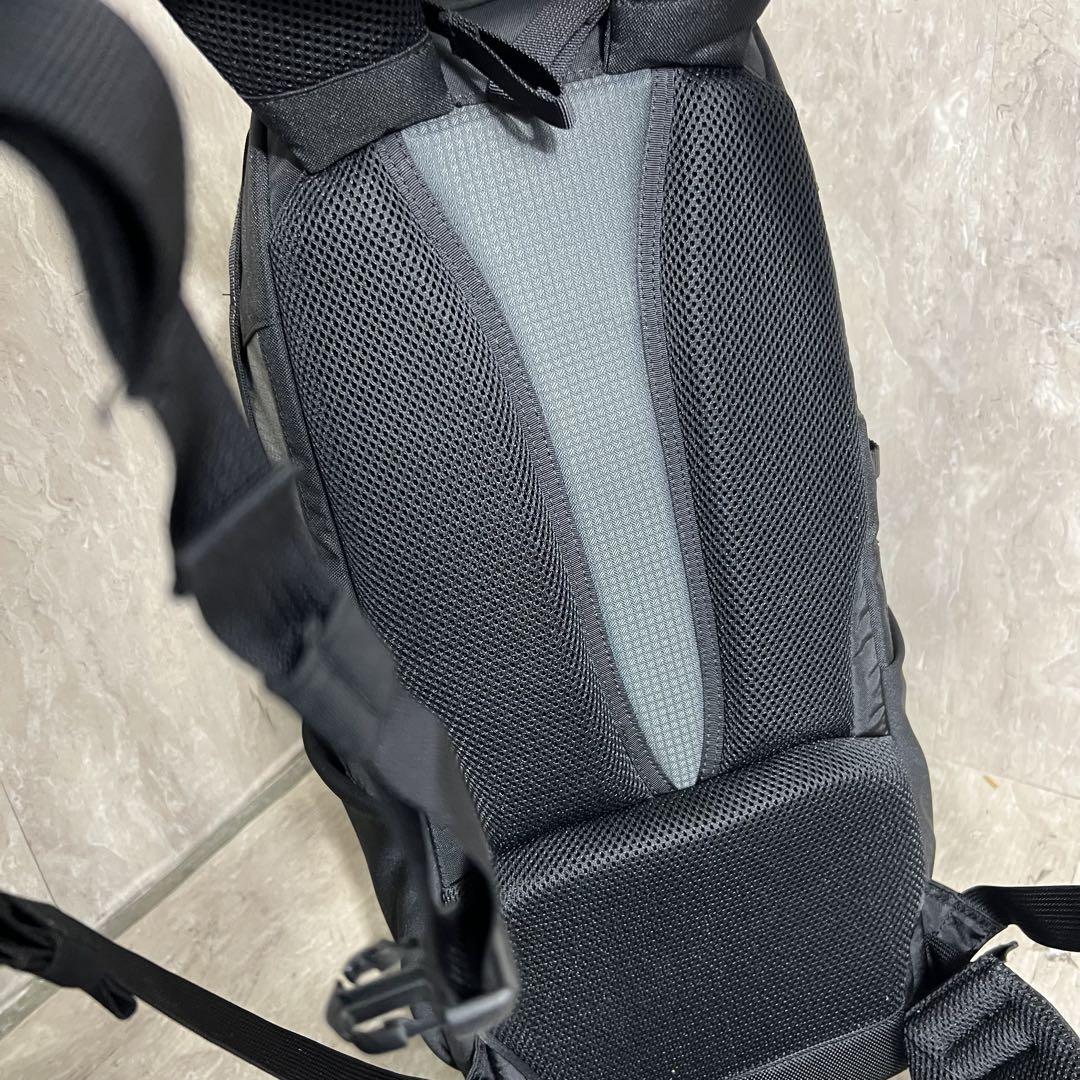 ショルダーストラップの付け根にはストラップのテンションを調整するスライダーが装備され、長い距離を歩く際の快適性が向上します