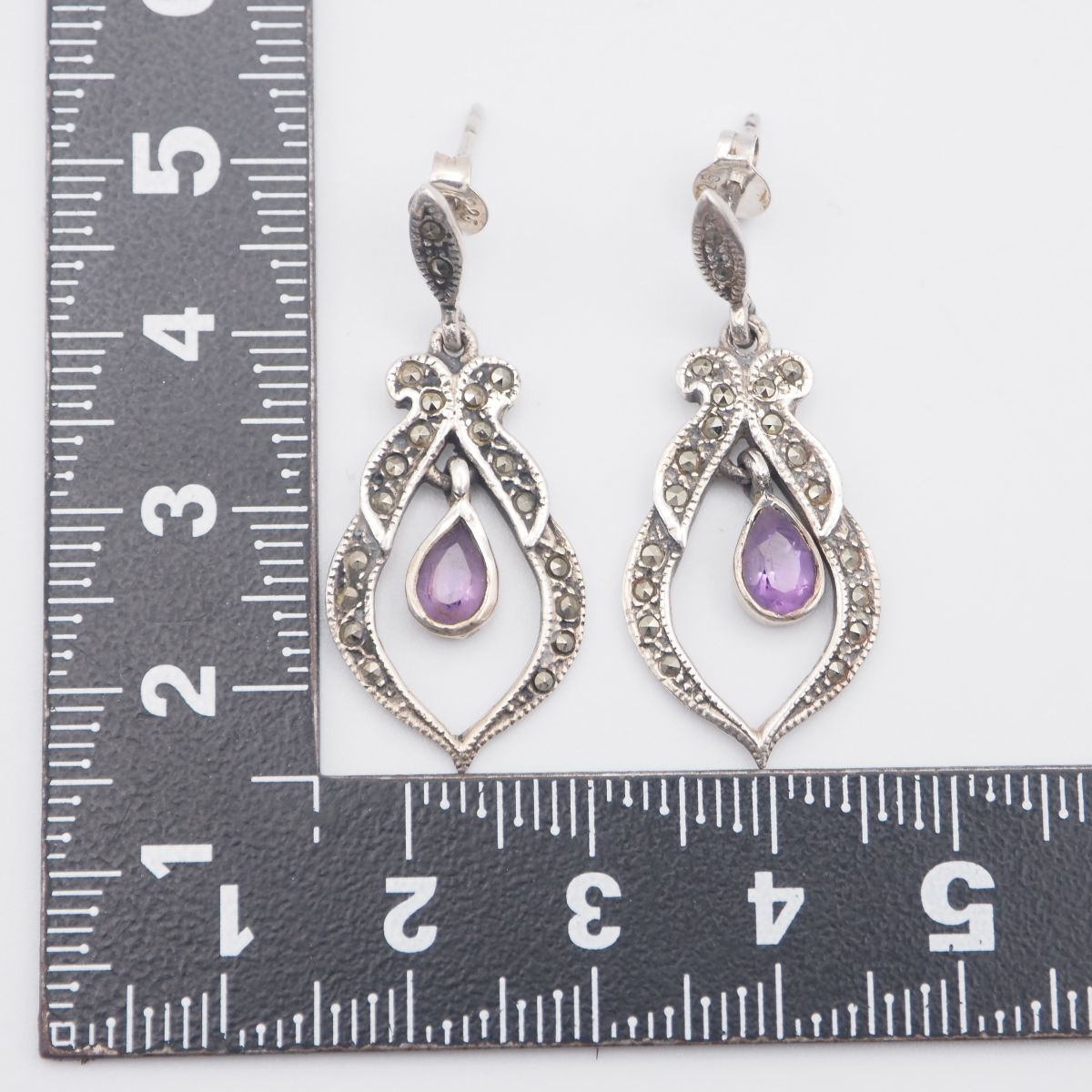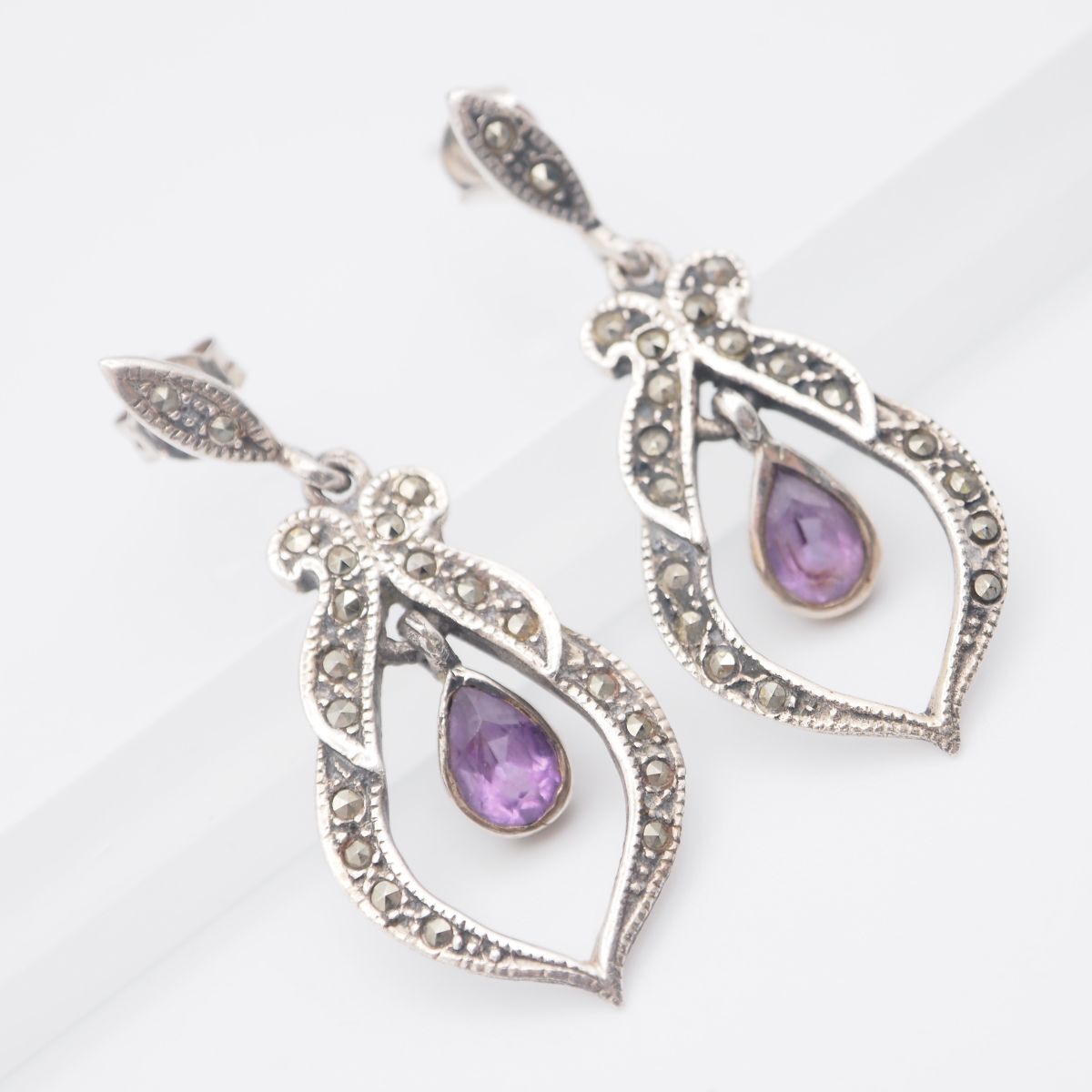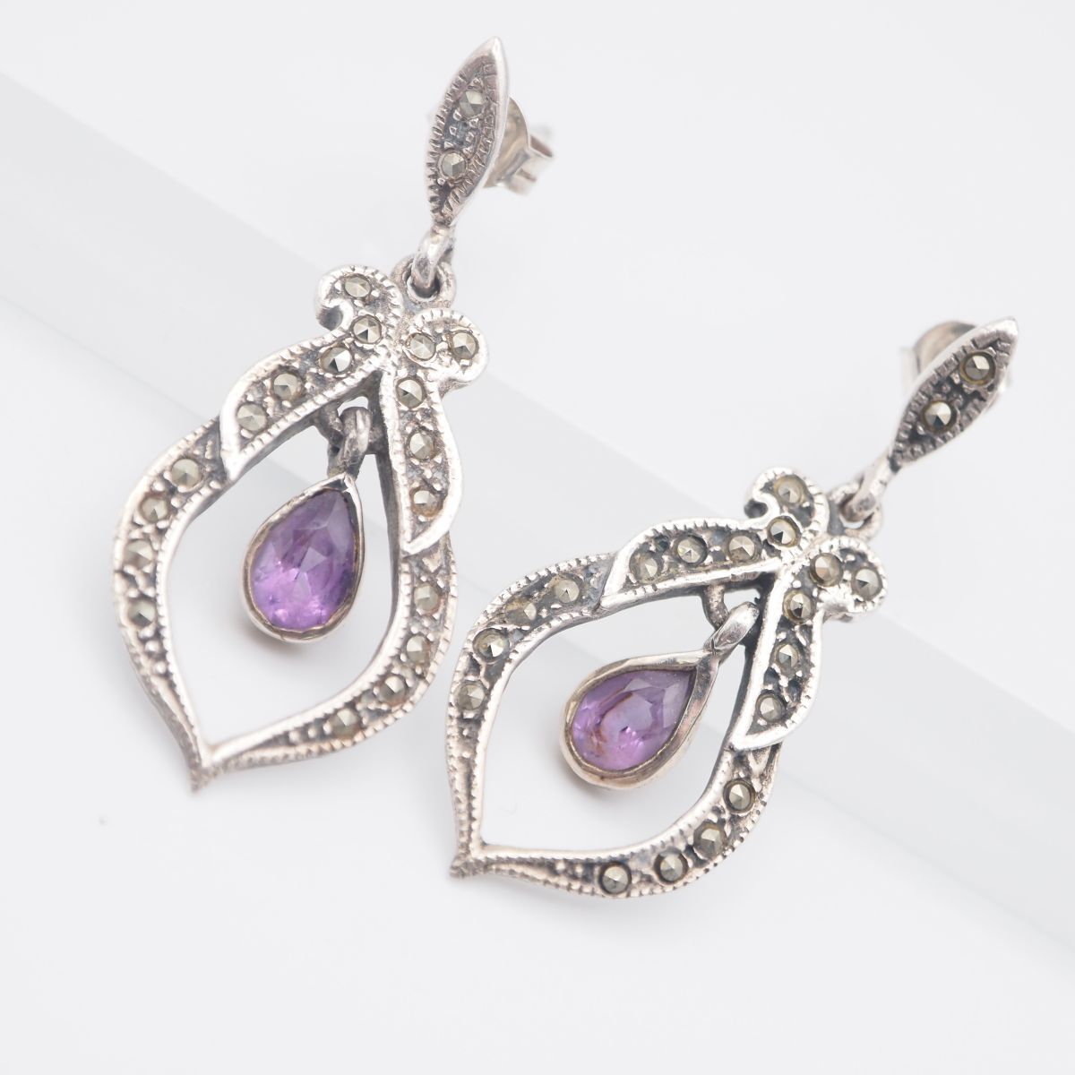 G613 アメジスト マーカサイト マルカジット 925刻印 ピアス スウィング デザイン シルバー ヴィンテージ 2月誕生石