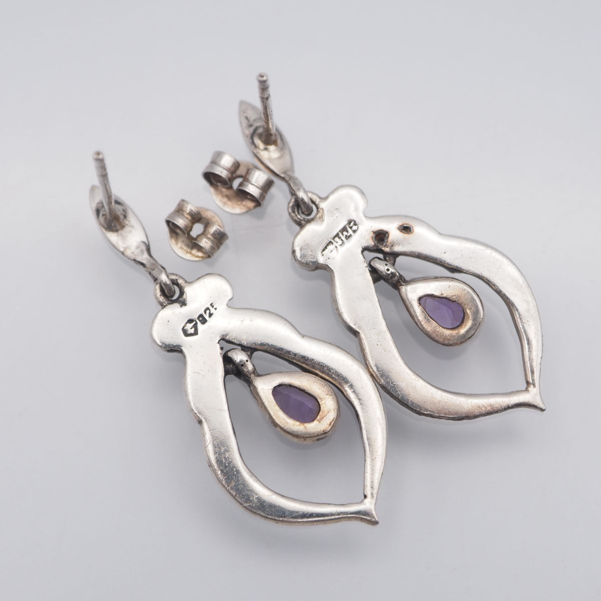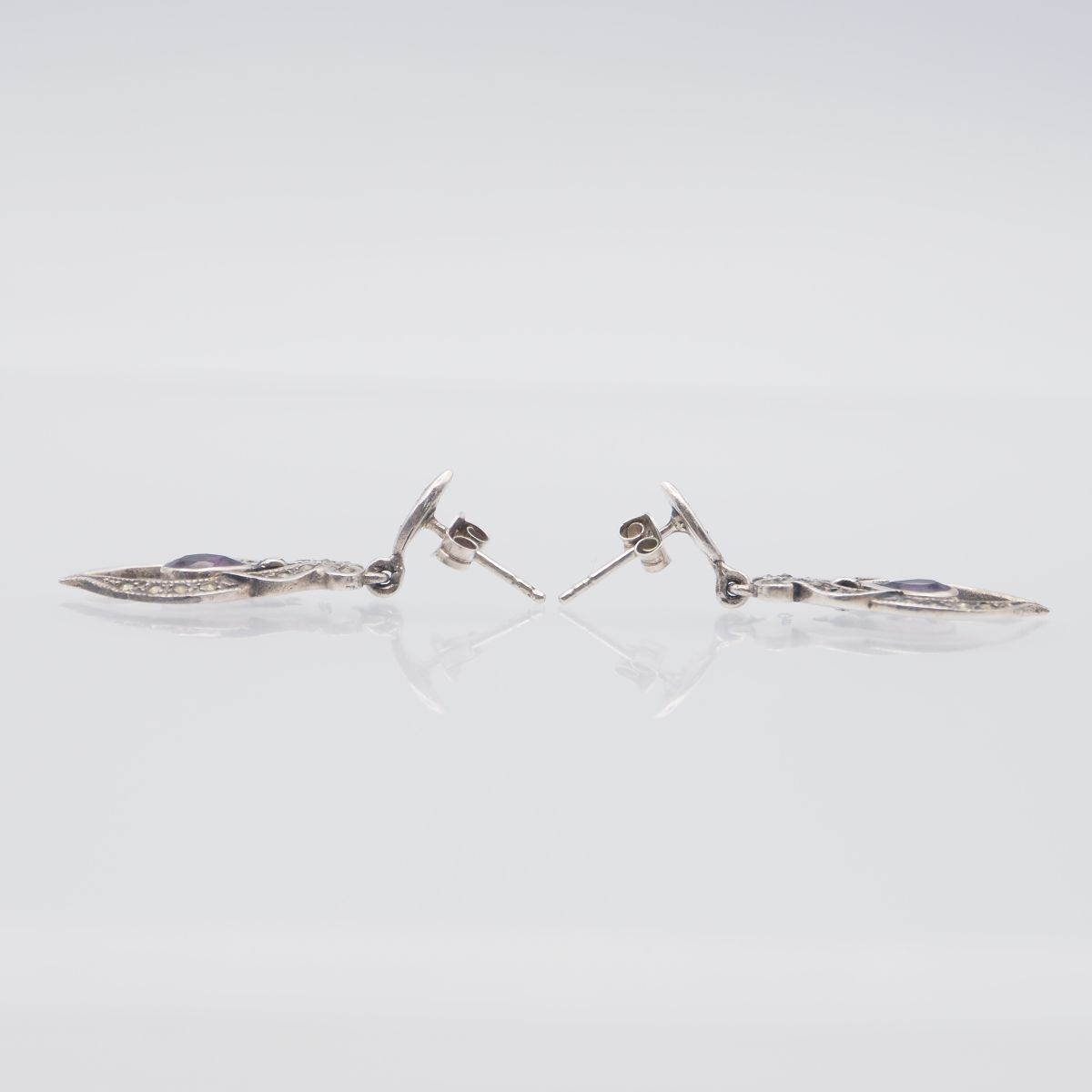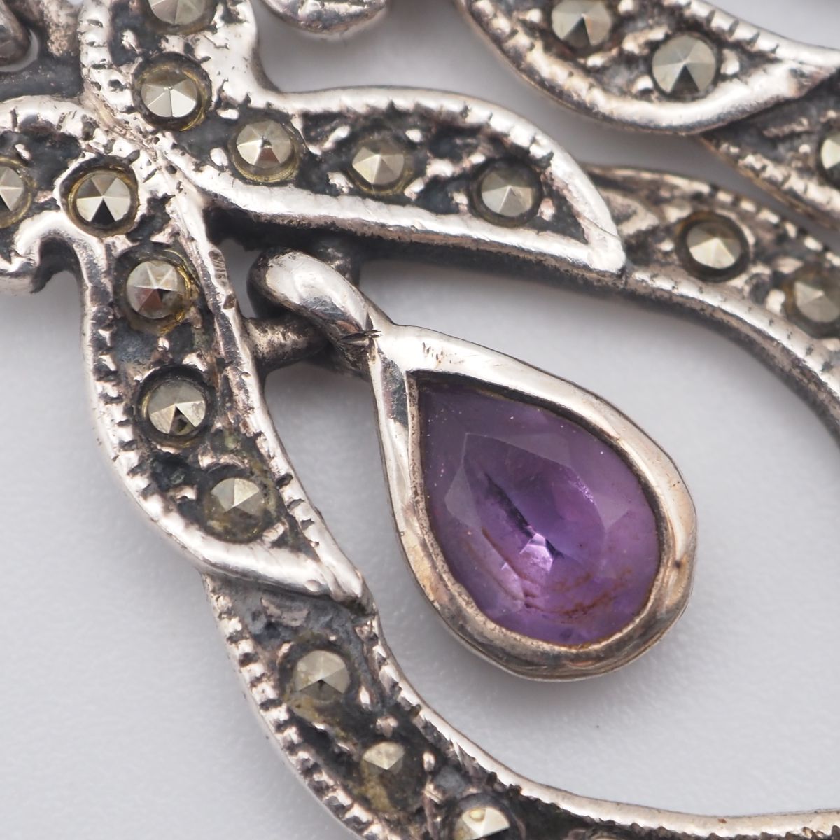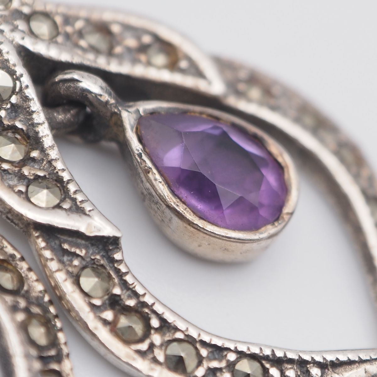 G613 アメジスト マーカサイト マルカジット 925刻印 ピアス スウィング デザイン シルバー ヴィンテージ 2月誕生石
