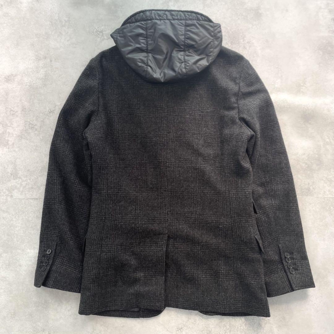 ドルチェアンドガッバーナ ドルガバ DOLCE&GABBANA ダウンベストジャケット コート フード付き レイヤード ダウン テーラード イタリア製 メンズ 48 L グレンチェック 高級 希少 美品