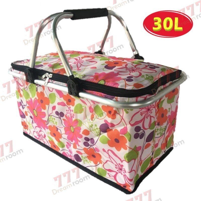 保冷・保温 機能付き 30L 折りたたみ式 エコバッグ【F-215-16】大容量 バスケット 買い物かご 断熱バッグ屋外 ピクニック