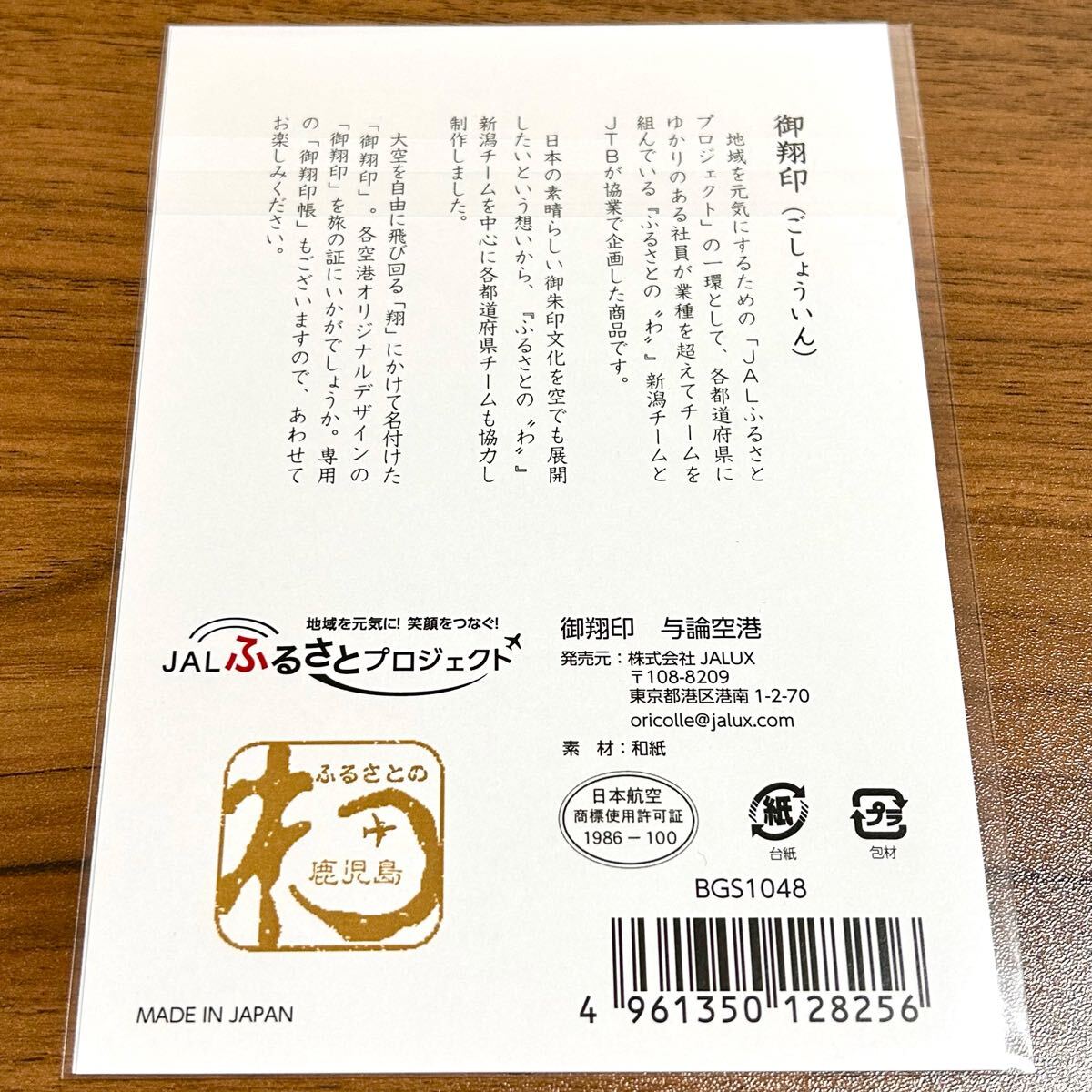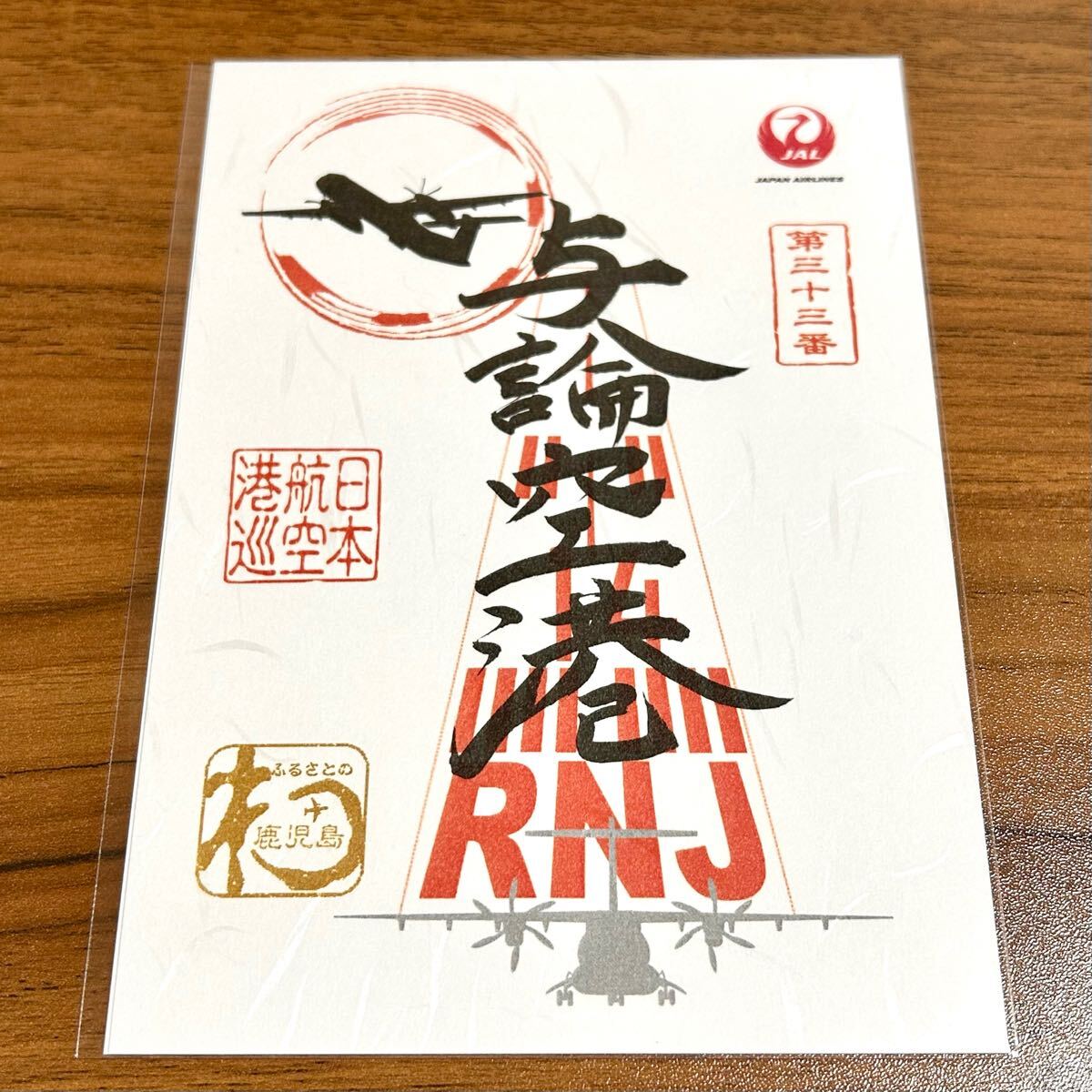 こちらは日本各地のJALグループ便就航空港にて限定販売されております「御翔印 与論空港」です。