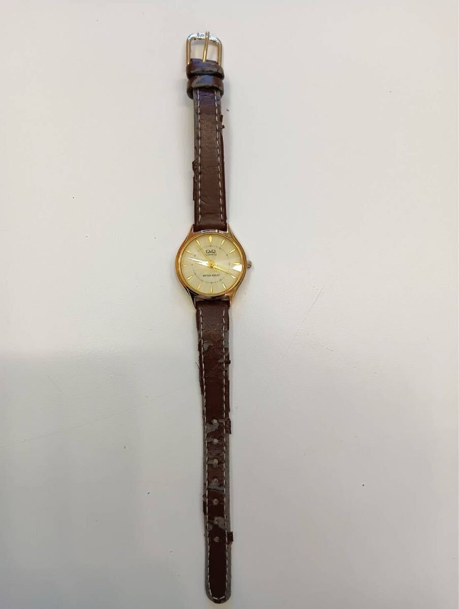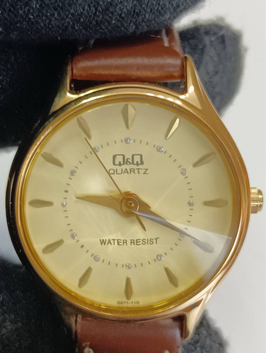 CITIZENシチズン Q&Q 腕時計 クオーツ ゴールド×茶ブラウンベルト ステンレス 時計 現状品
