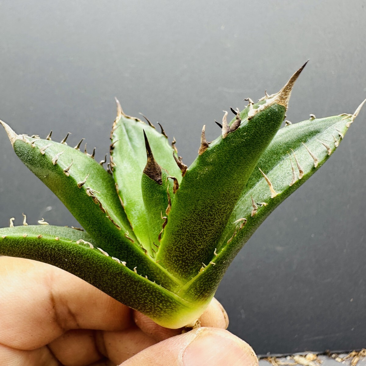 現在ネット上、とりわけオクとメルカリに偽物アガベの子株がたくさん出回っています。各プラットフォームの担当者は専門知識を持っていないため、摘発しても対応しきれないのは現状です。しかしここでは全ての出品は本物で適切な金額であることを保証します。安心してご購入下さい。