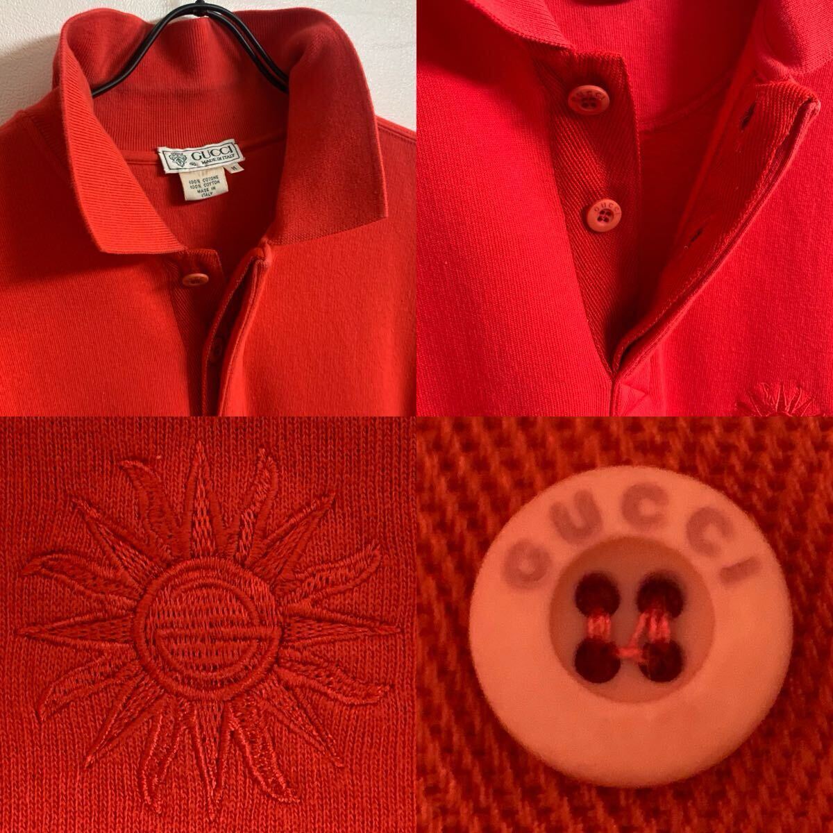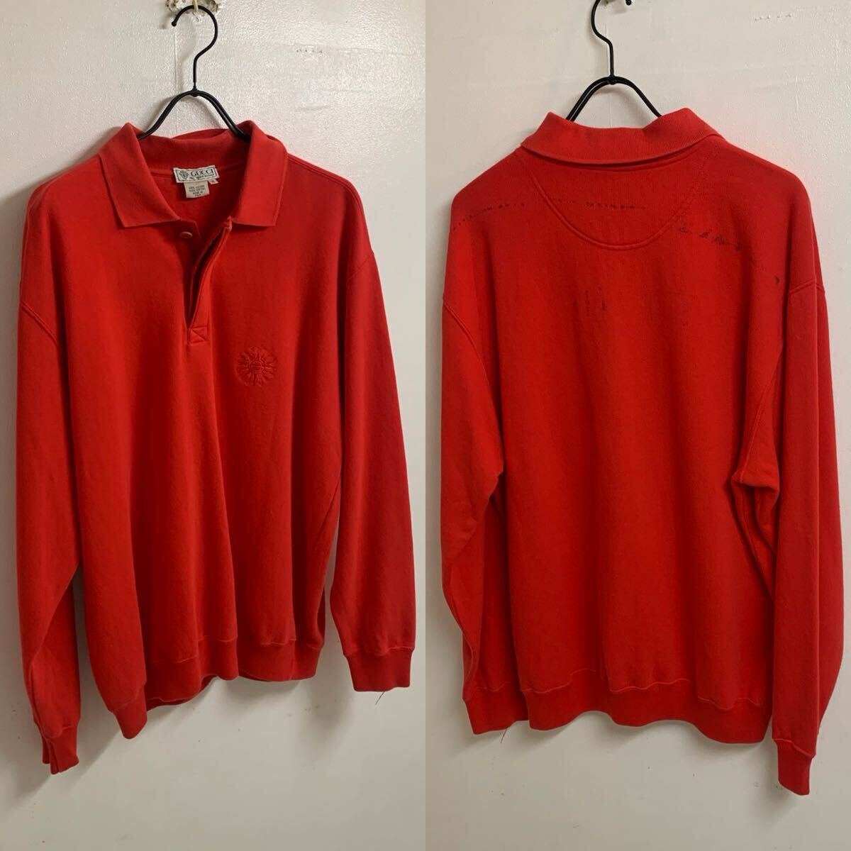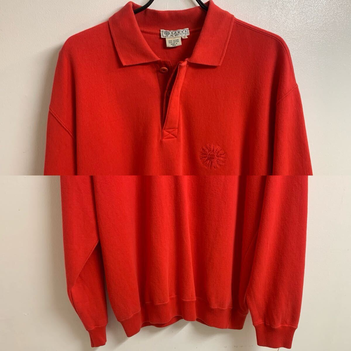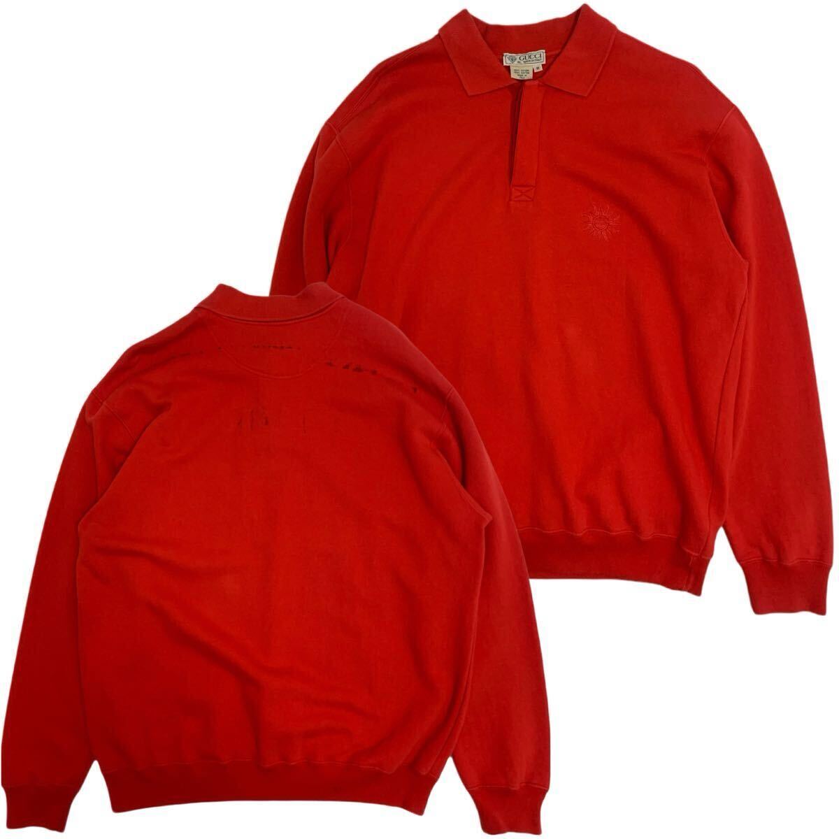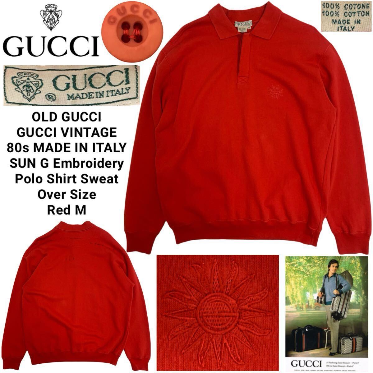 【MEMO】OLD GUCCI オールドグッチ GUCCI VINTAGE グッチ ヴィンテージ 80s MADE IN ITALY イタリア製 SUN G刺繍 スウェットポロ 太陽G刺繍 ポロシャツデザインスウェット オーバーサイズ 裏起毛 レッド系 M アーカイブです。