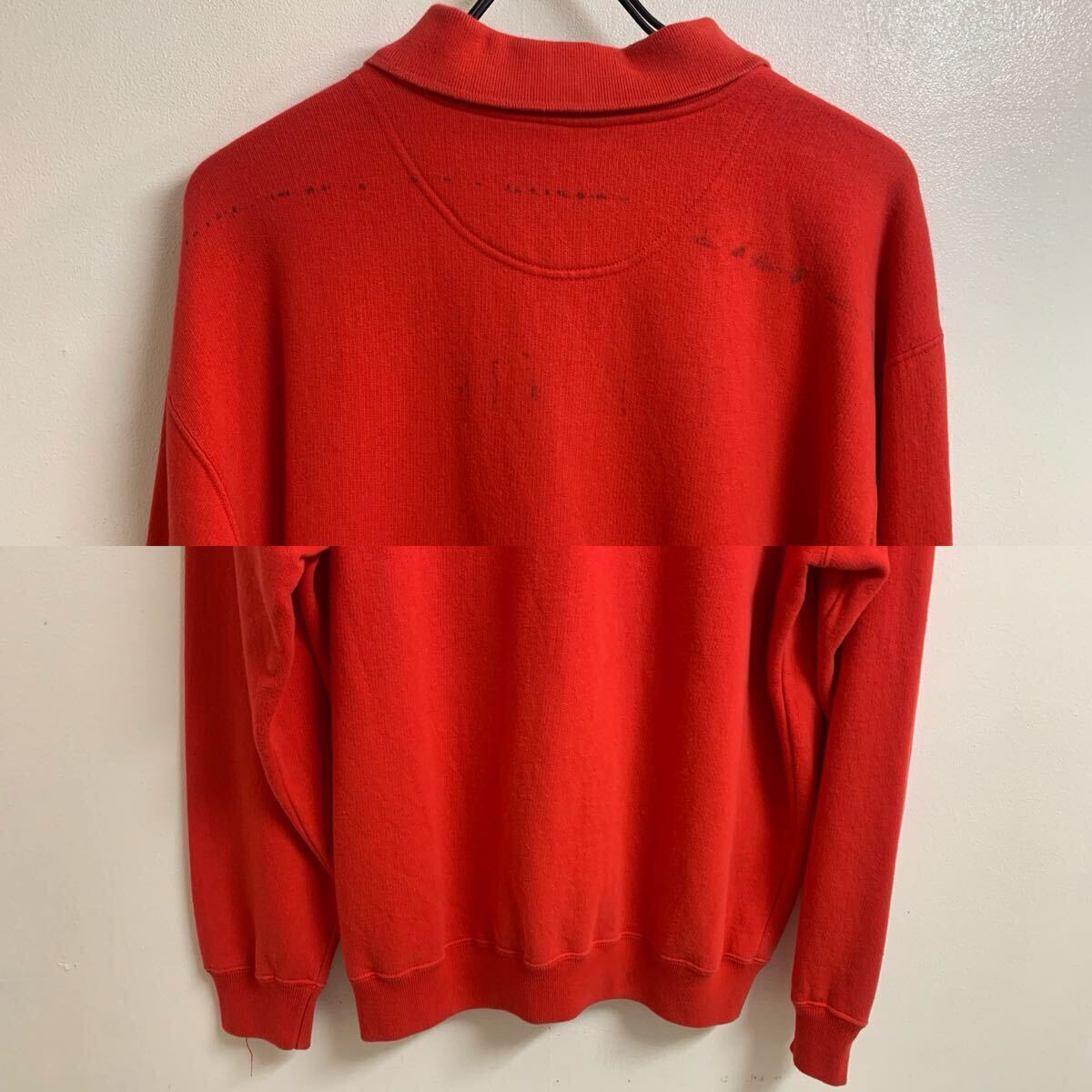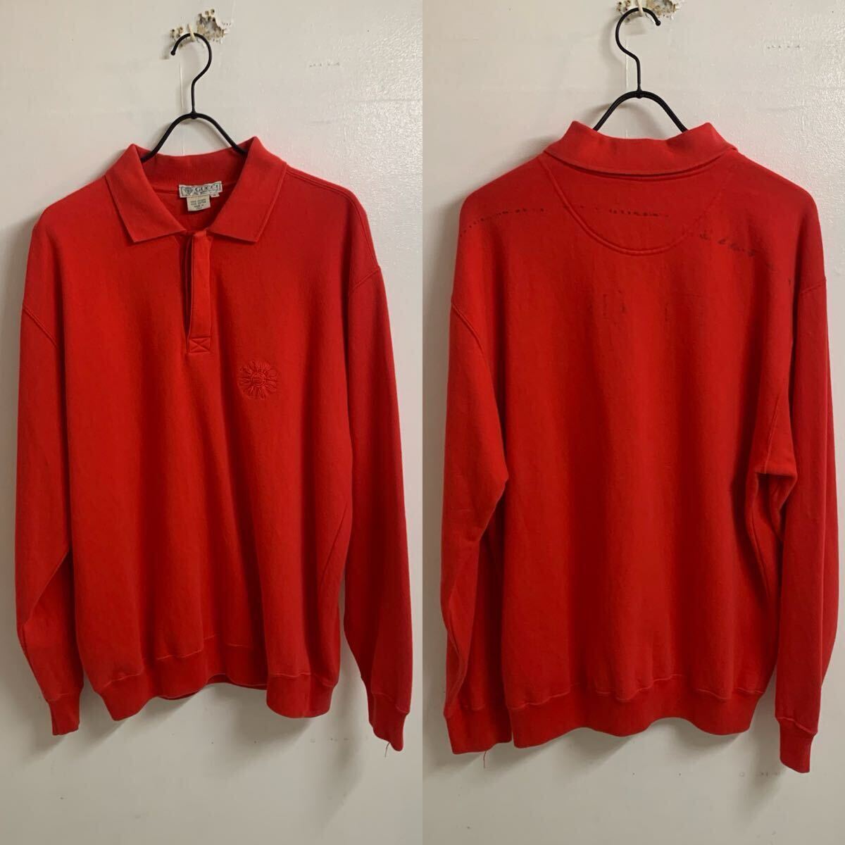 【IETM】80s MADE IN ITALY イタリア製 SUN G刺繍 スウェットポロ 太陽G刺繍 ポロシャツデザインスウェット オーバーサイズ 裏起毛 レッド系 M アーカイブ