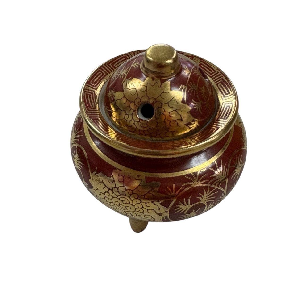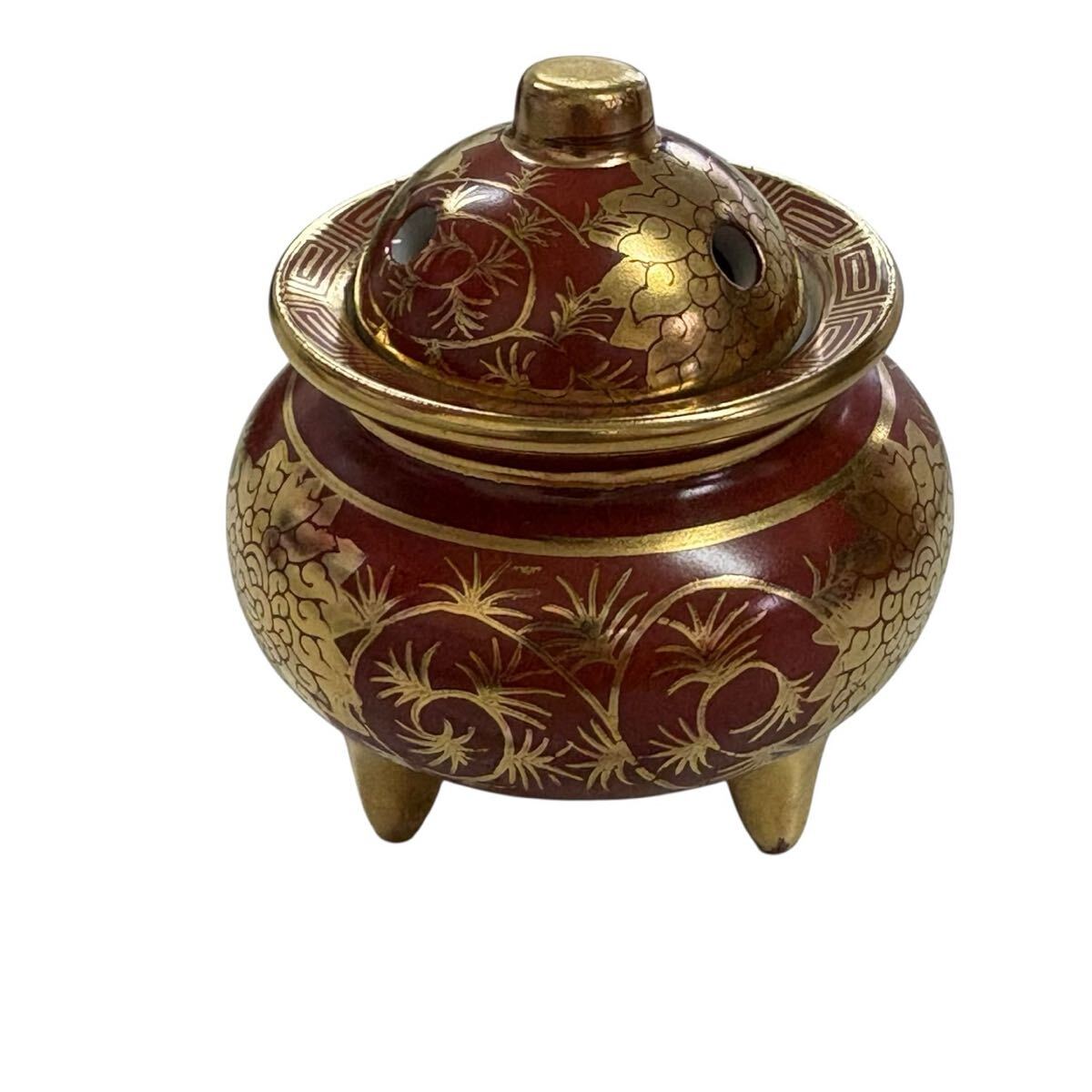 豪華 九谷焼 三足香炉 九谷陶正 ミニサイズ 金彩 黄金 金 アンティーク 骨董品