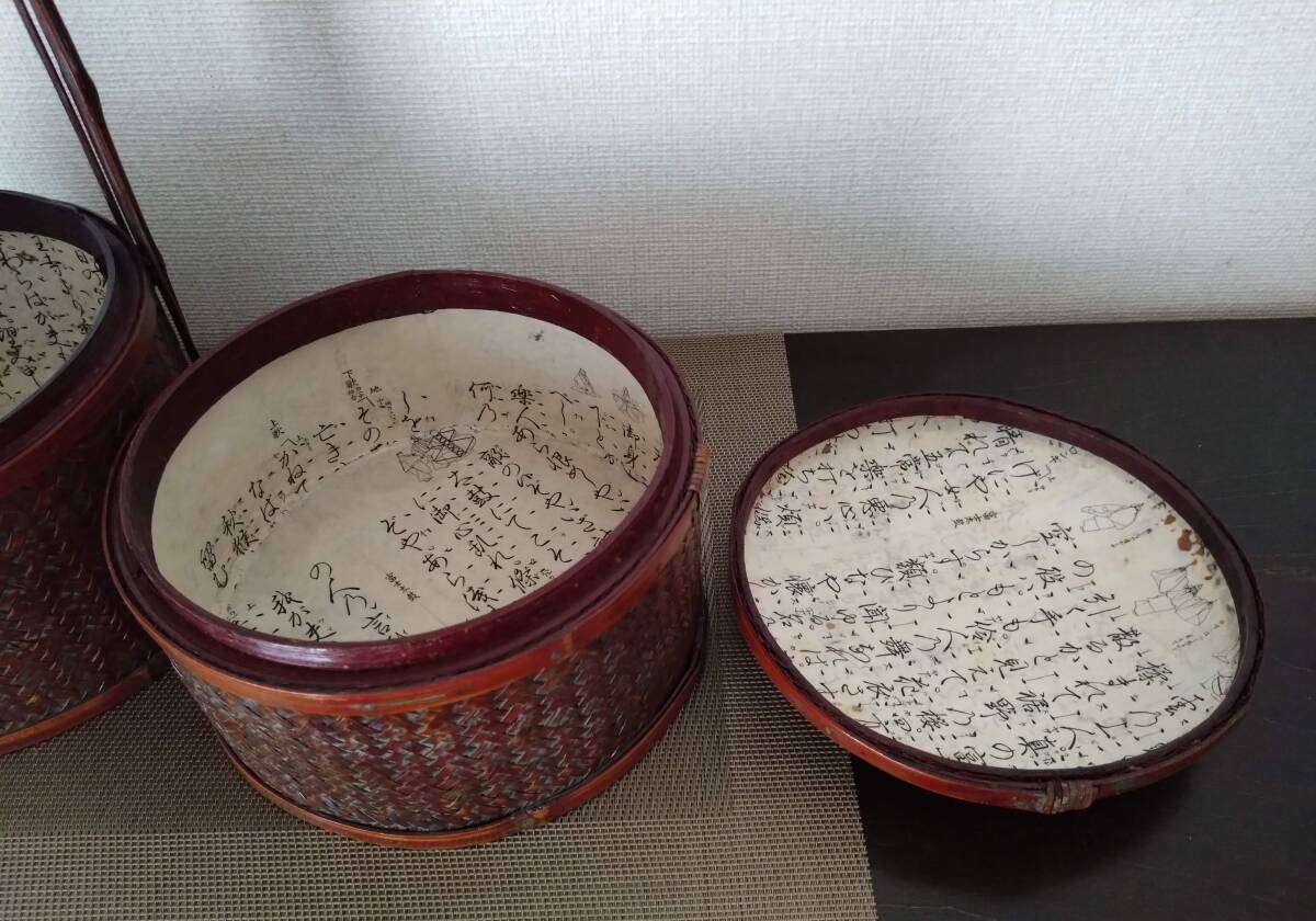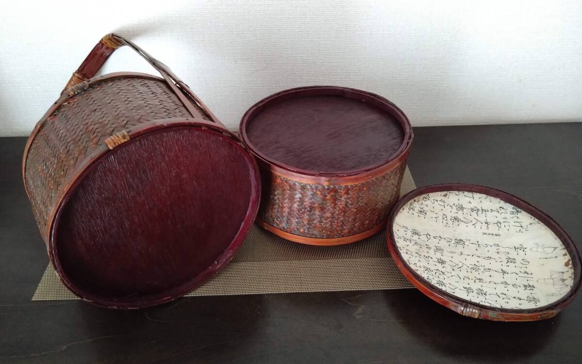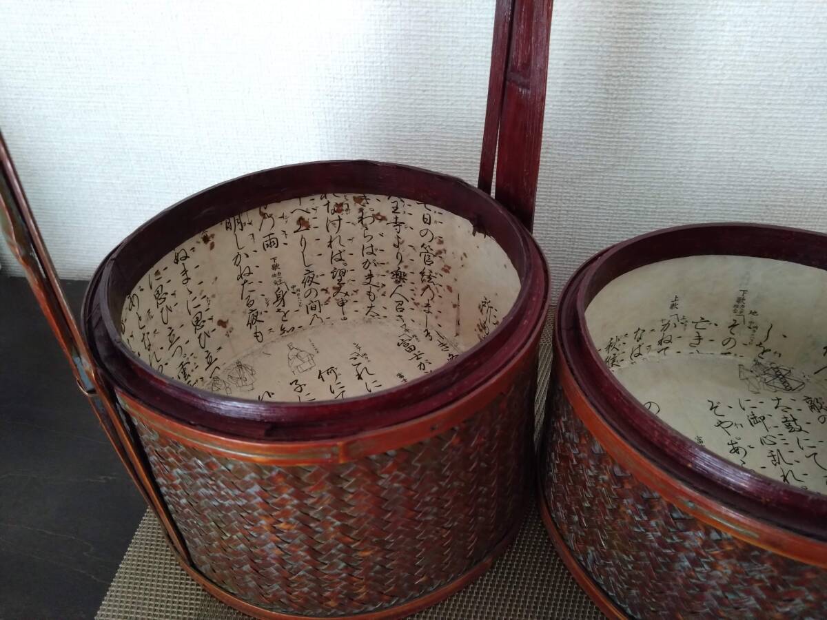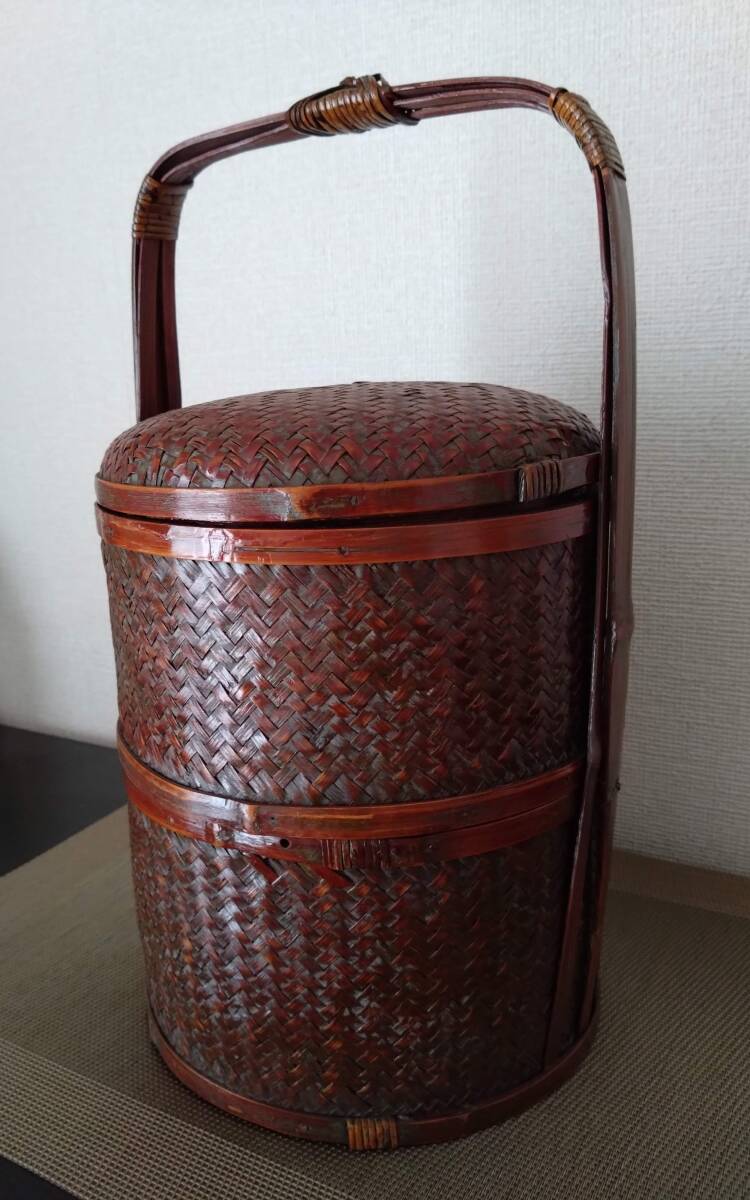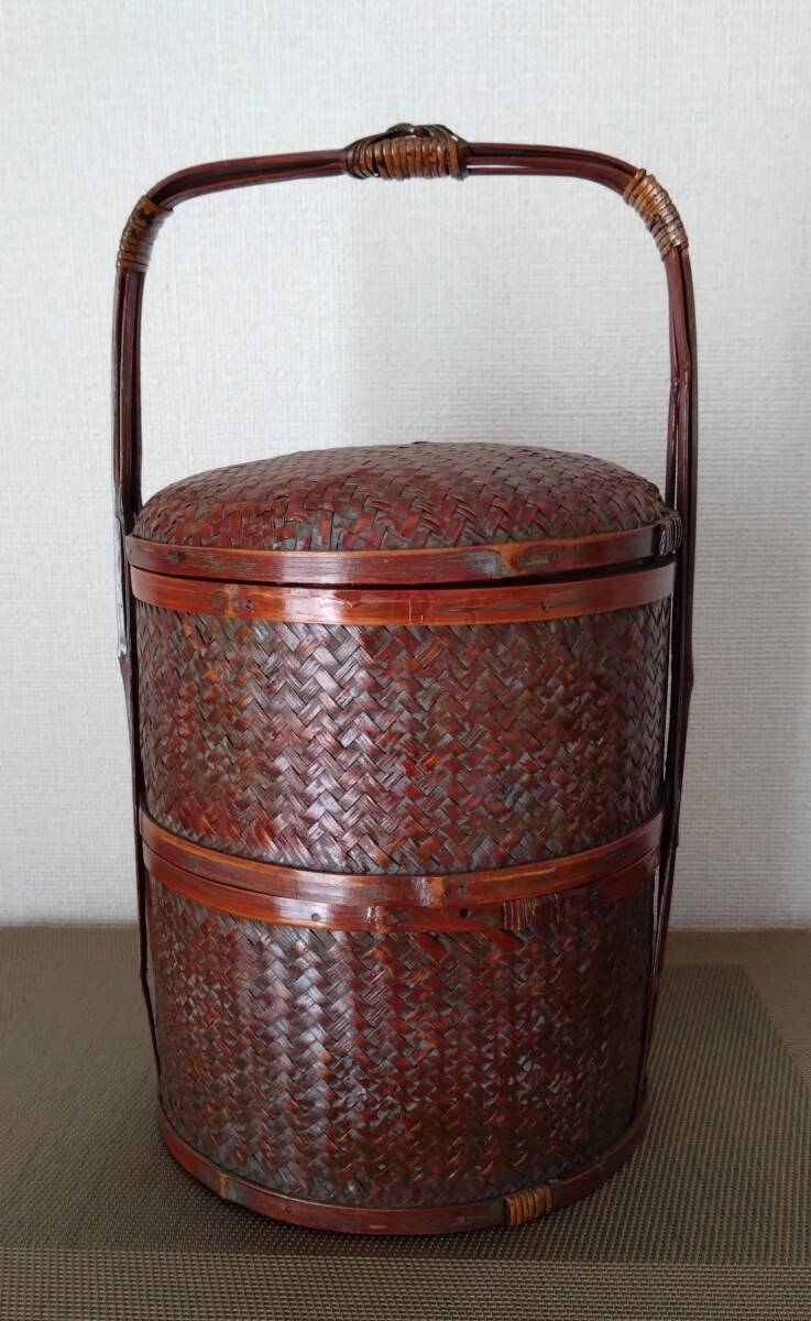 提籃 茶籠 竹製網代 二段手提げ 煎茶道具