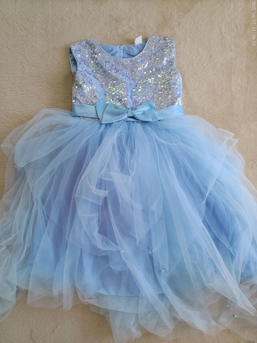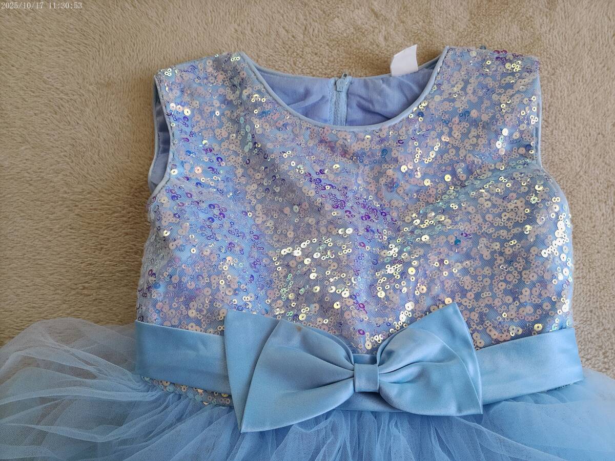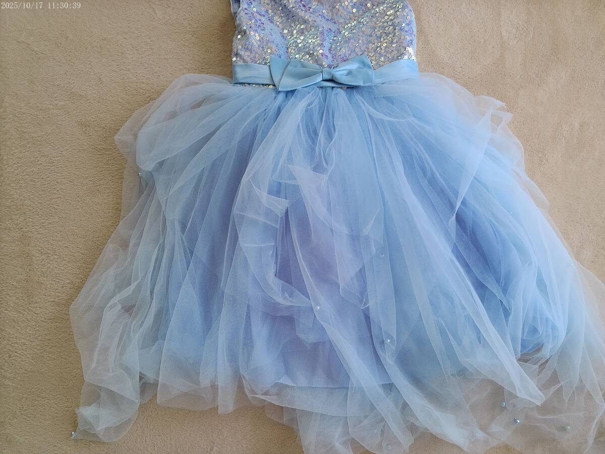 ■シフォンとスパンコールのドレス■サイズ140■水色■