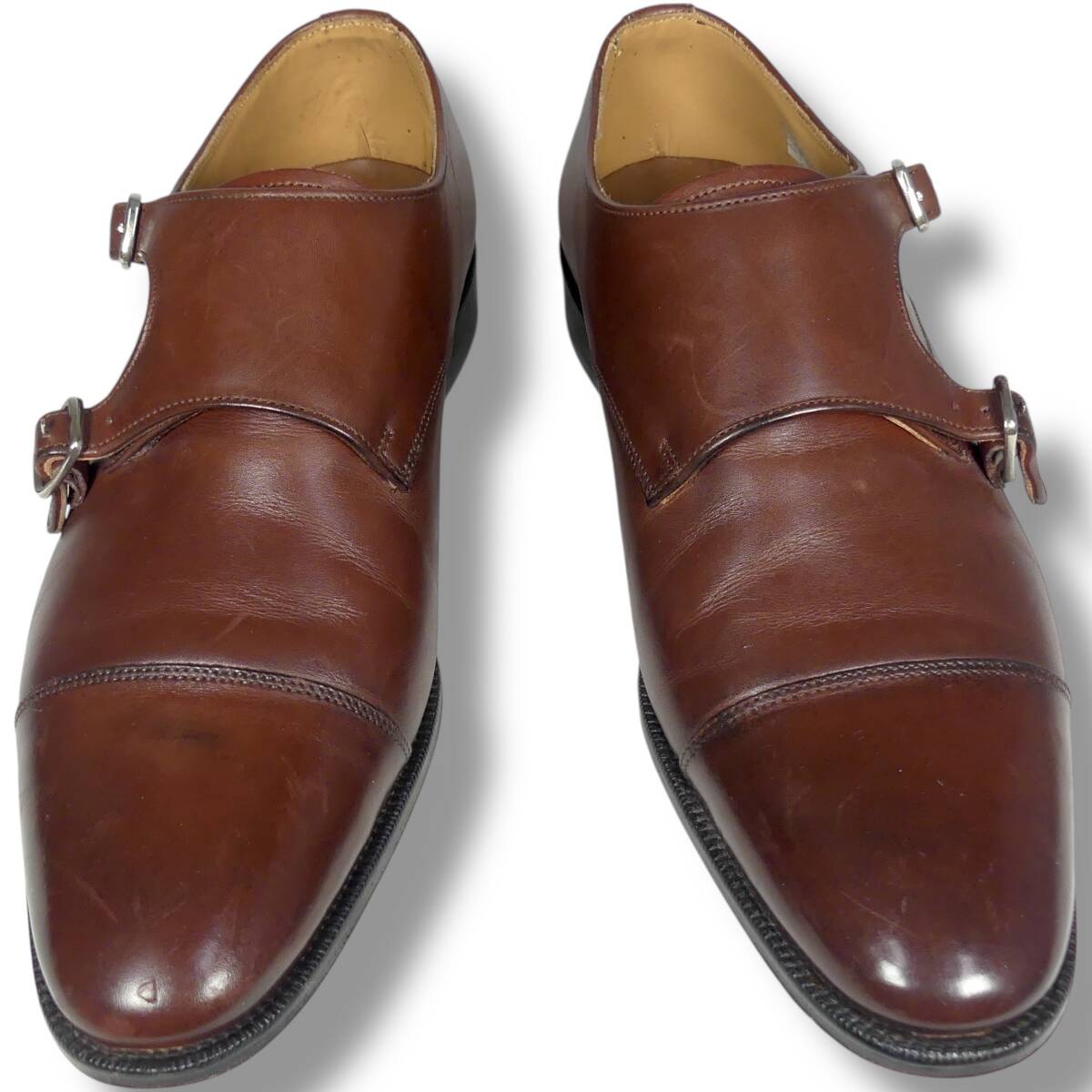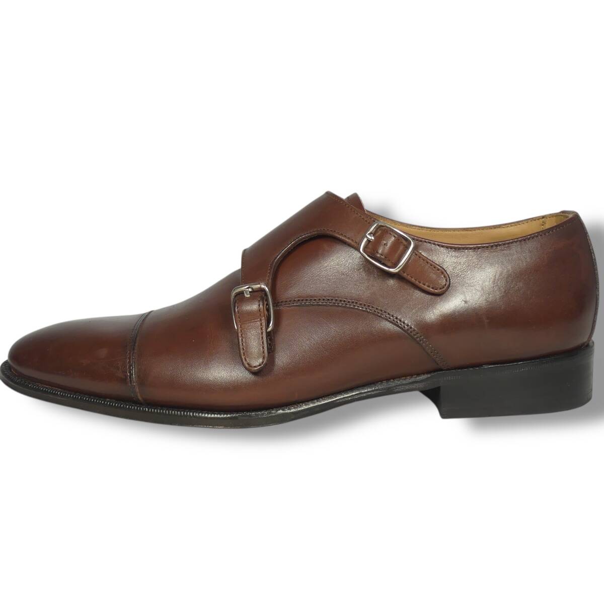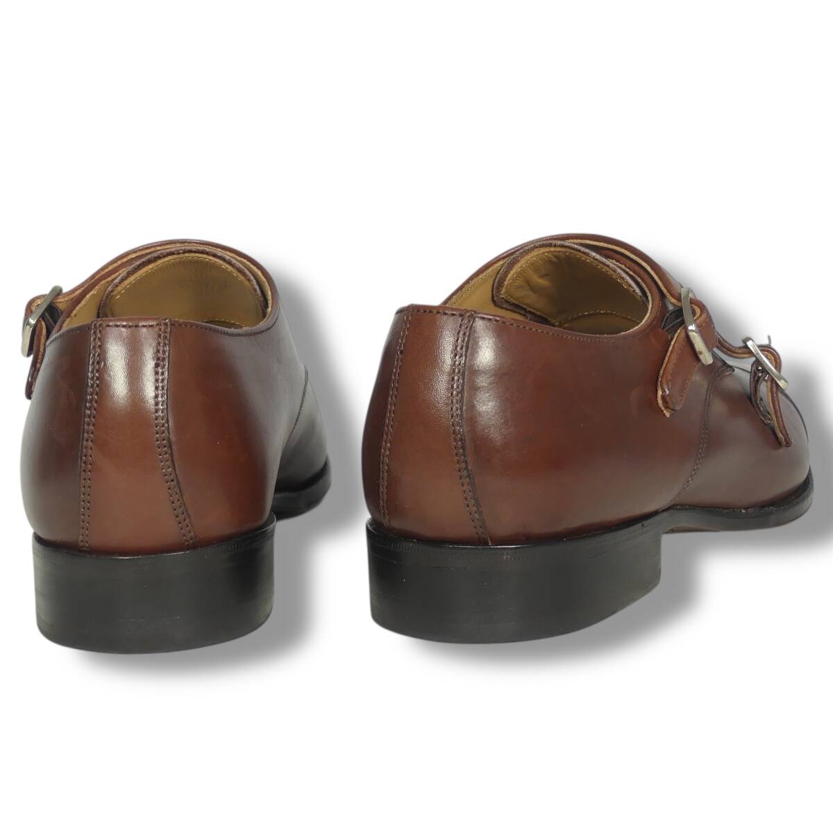 即決★J.A.Ramis MEERMIN★26cm レザービジネスシューズ モンクストラップ メルミン インド製 メンズ 7.5 本革 茶 ストレートチップ