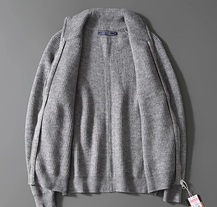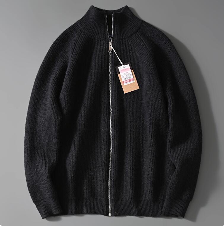新作XL ブラック ウール混 セーター カーディガン 柔らか 暖かさ 秋冬 厚手 ニット ジャケット ジップアップ メンズ アウター