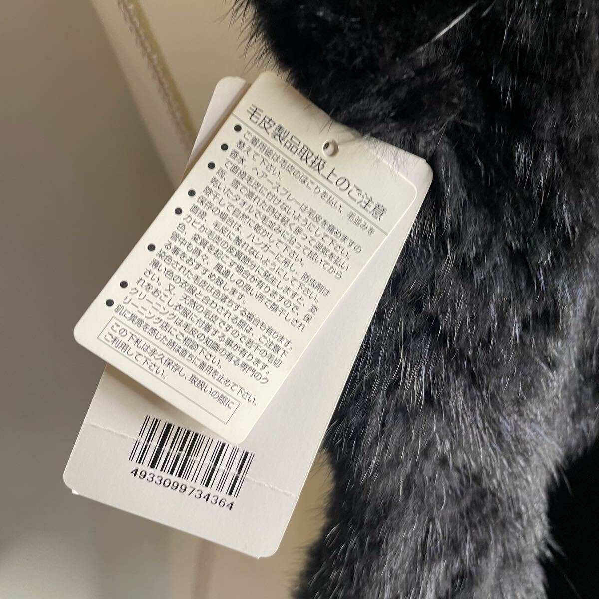 新品タグ付きで、毛並みも美しく保たれています。