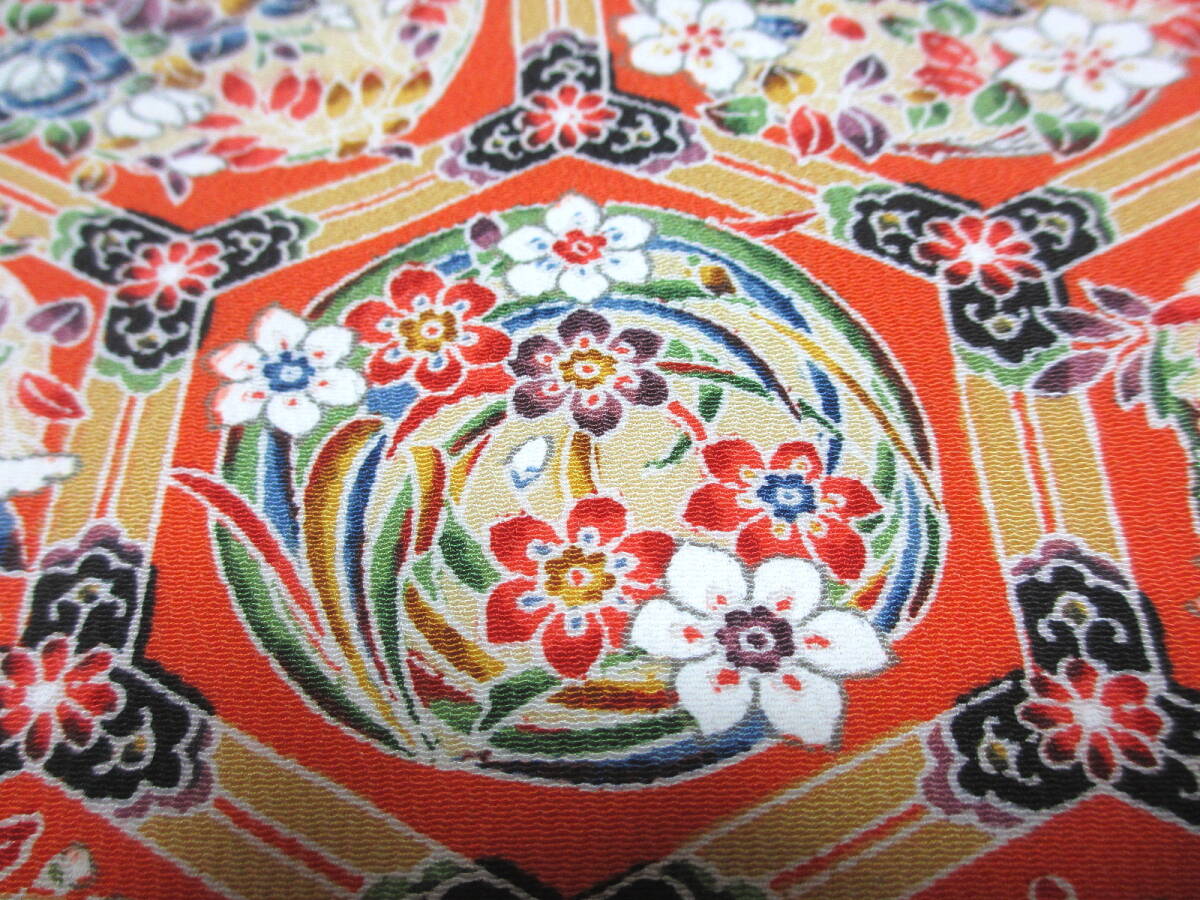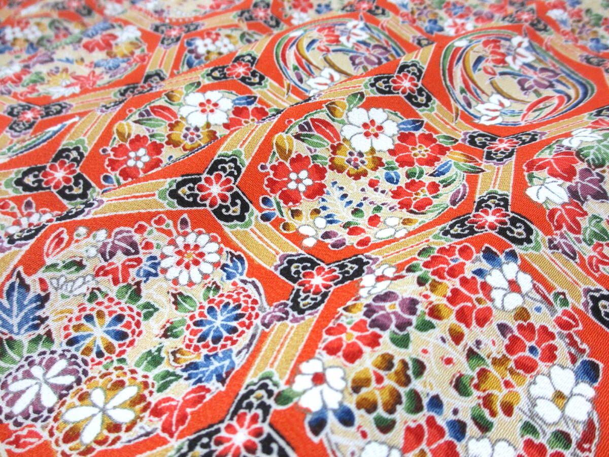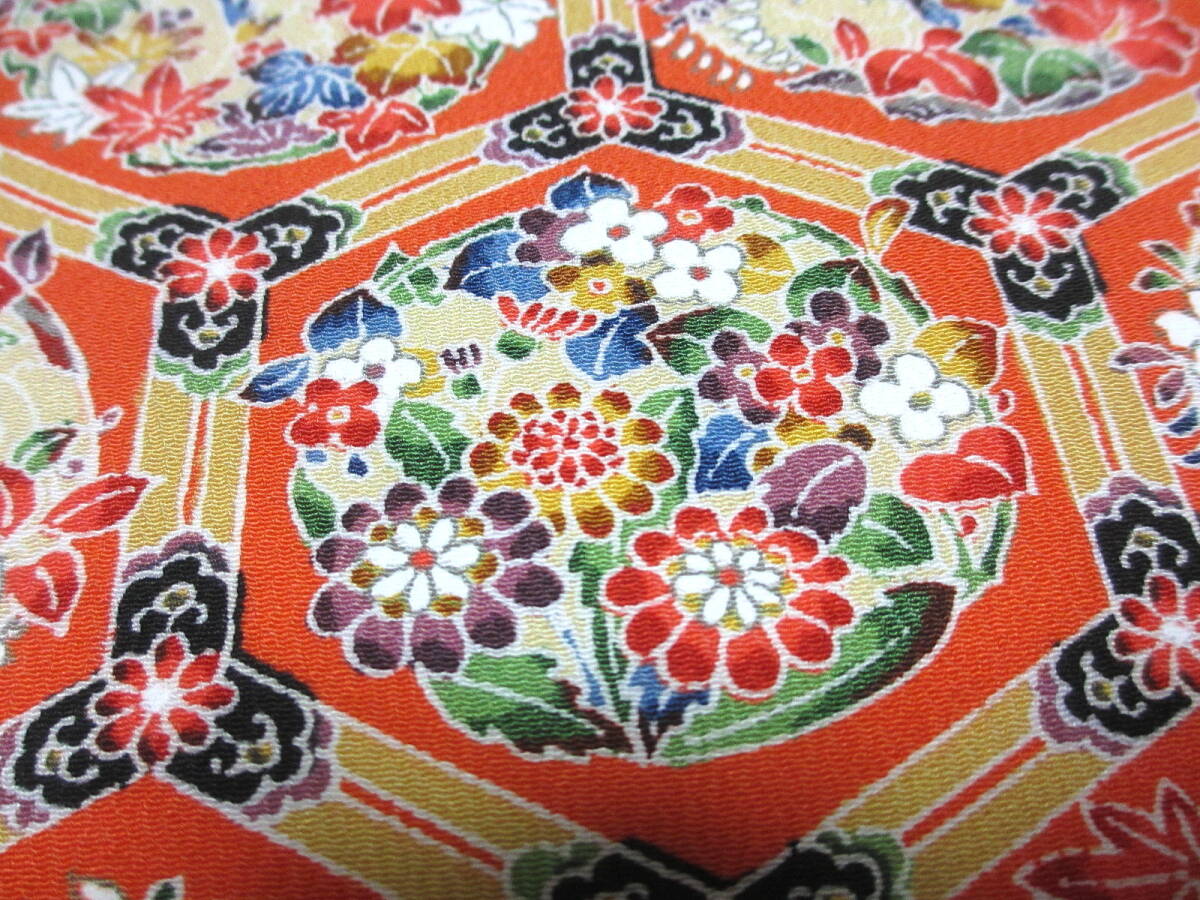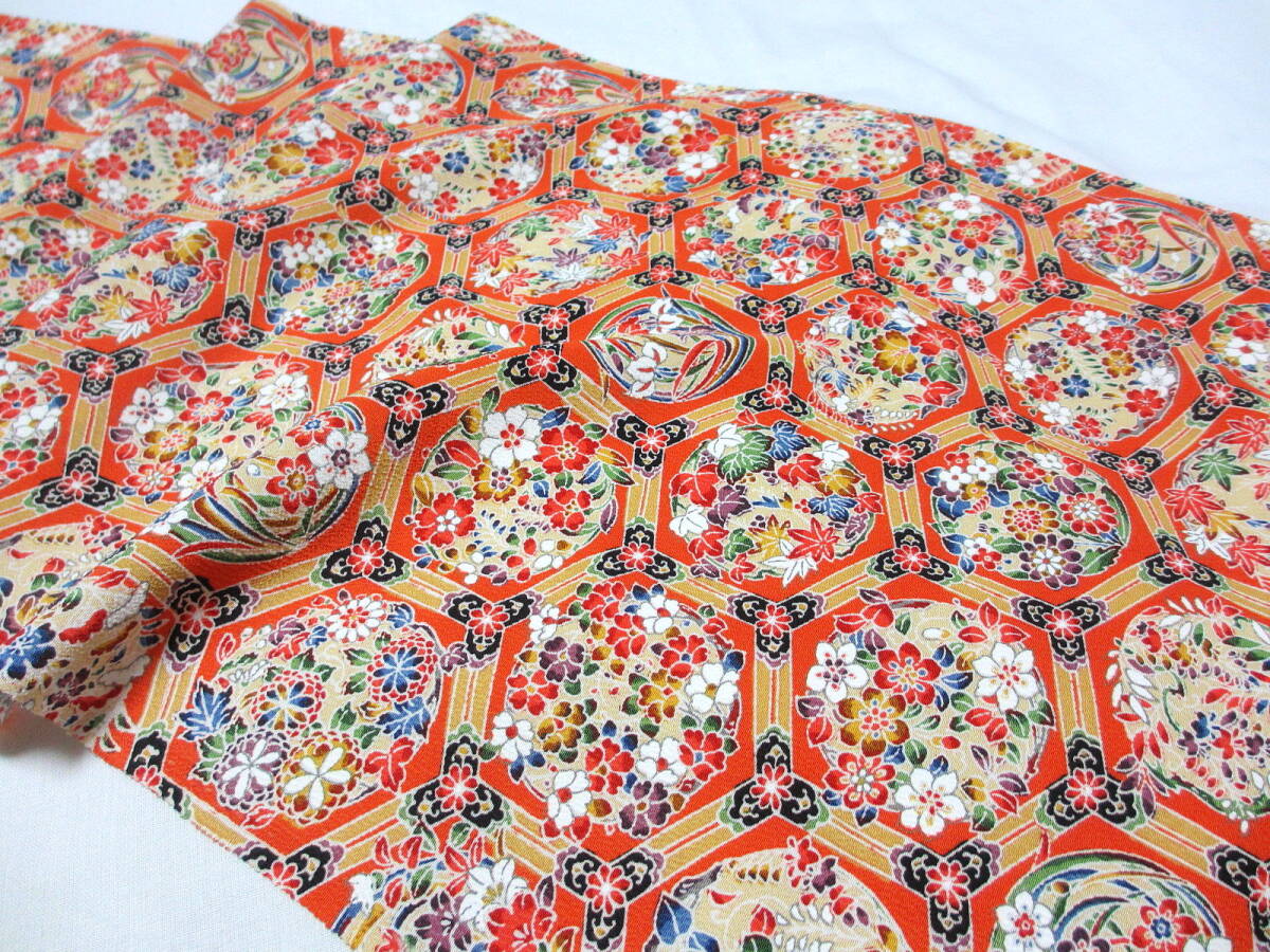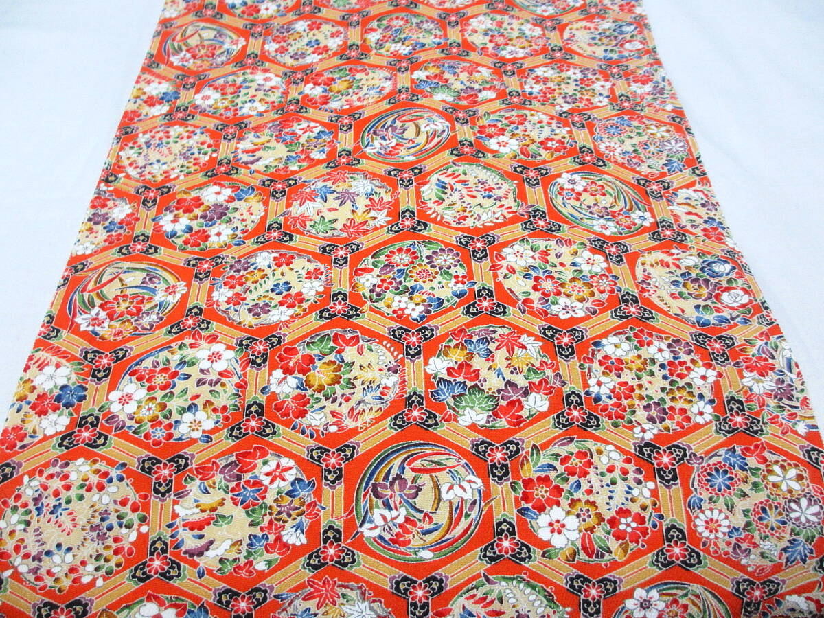 可愛い亀甲と花丸紋の柄があります。手芸等にいかがでしょうか。薄い汚れ、傷、シワ、折山等ありますのでご了承願います。